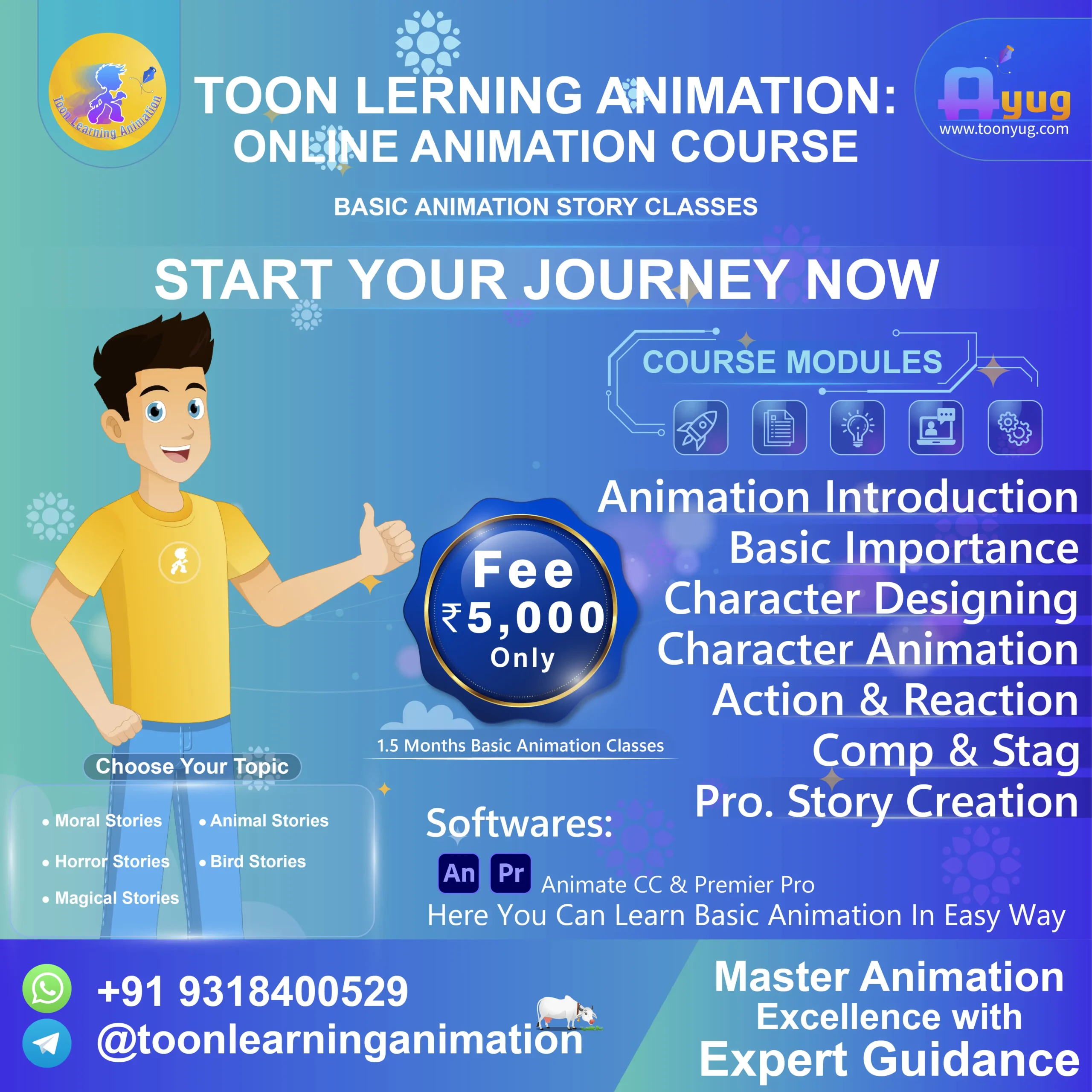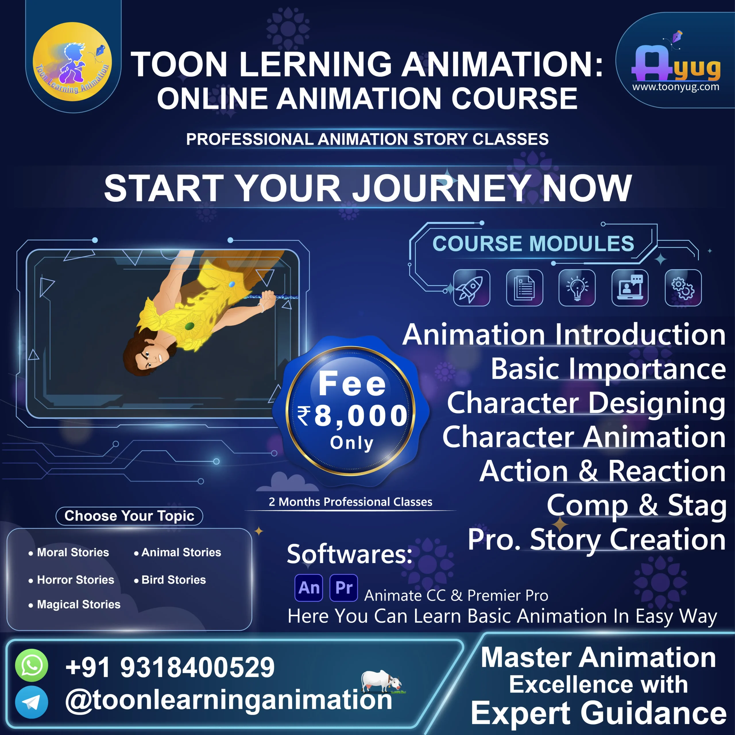 Our Basic + Pro Lite Animation Classes are meticulously designed to transform you into a professional storyteller. We focus on industry-standard techniques to create professional animation stories.