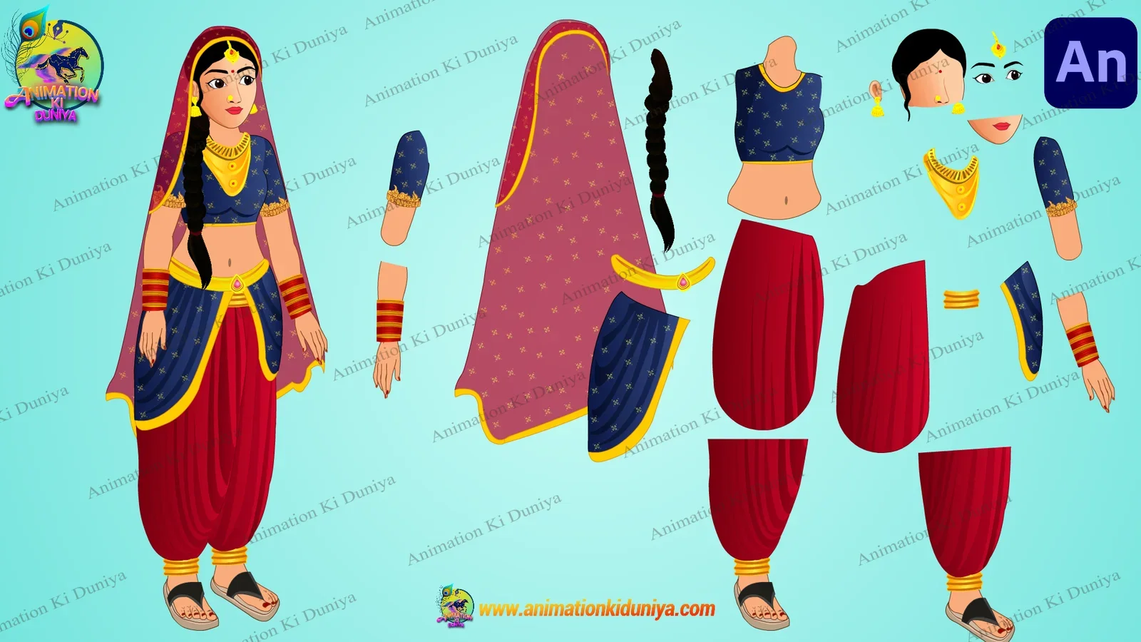 Boost your animation production with this “Ultimate 25 Character Mega Bundle.” This pack is specially designed for 2D storytellers and YouTube creators. It features a wide variety of Indian characters, including: