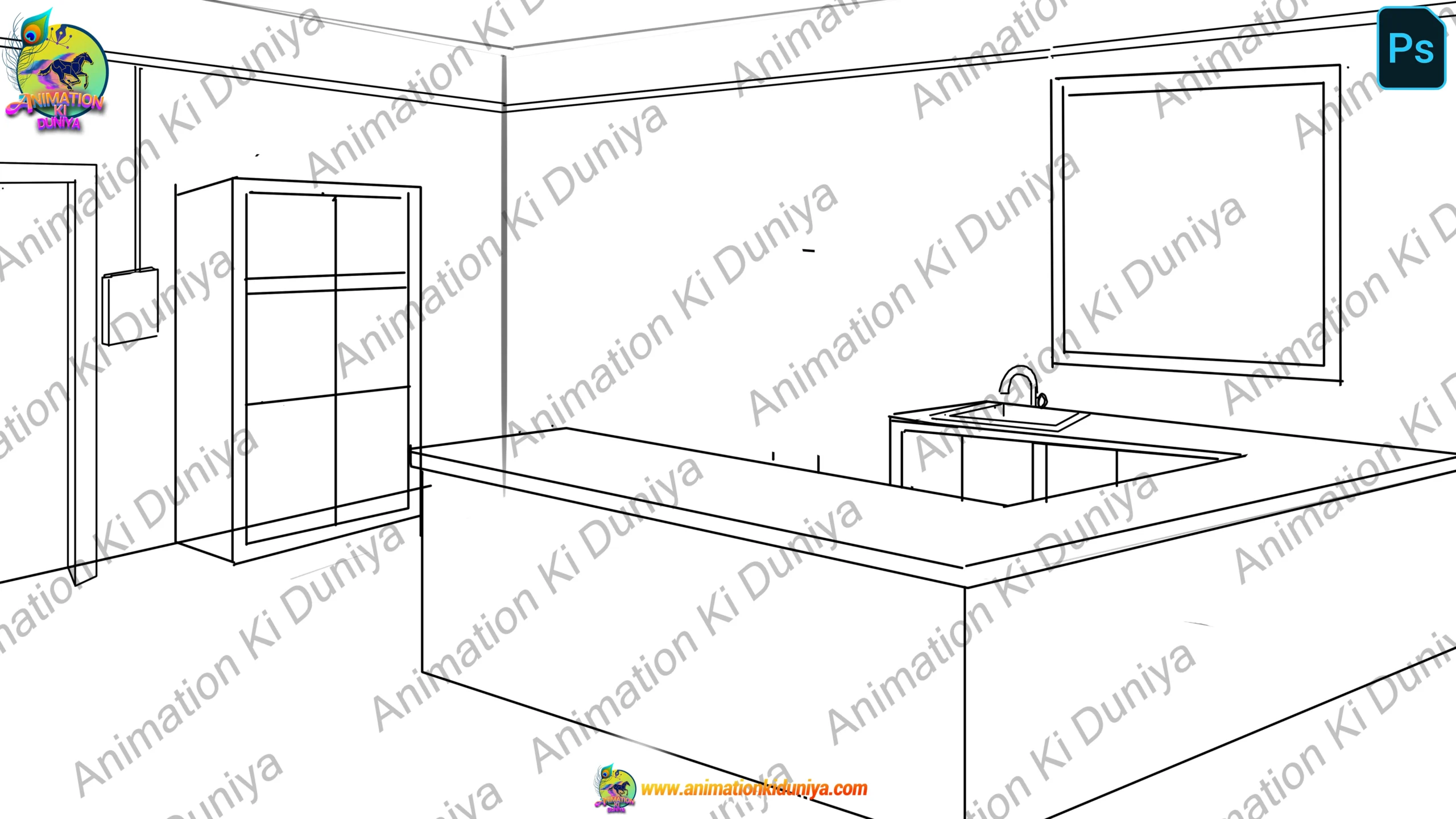 • Complete your village home setting with this detailed Traditional Kitchen Background. It features a classic kitchen counter with a gas stove, steel utensils, storage shelves, and a large window looking out onto a rural landscape. Perfect for cooking scenes, family meal preparation, or household dialogues in your animation.