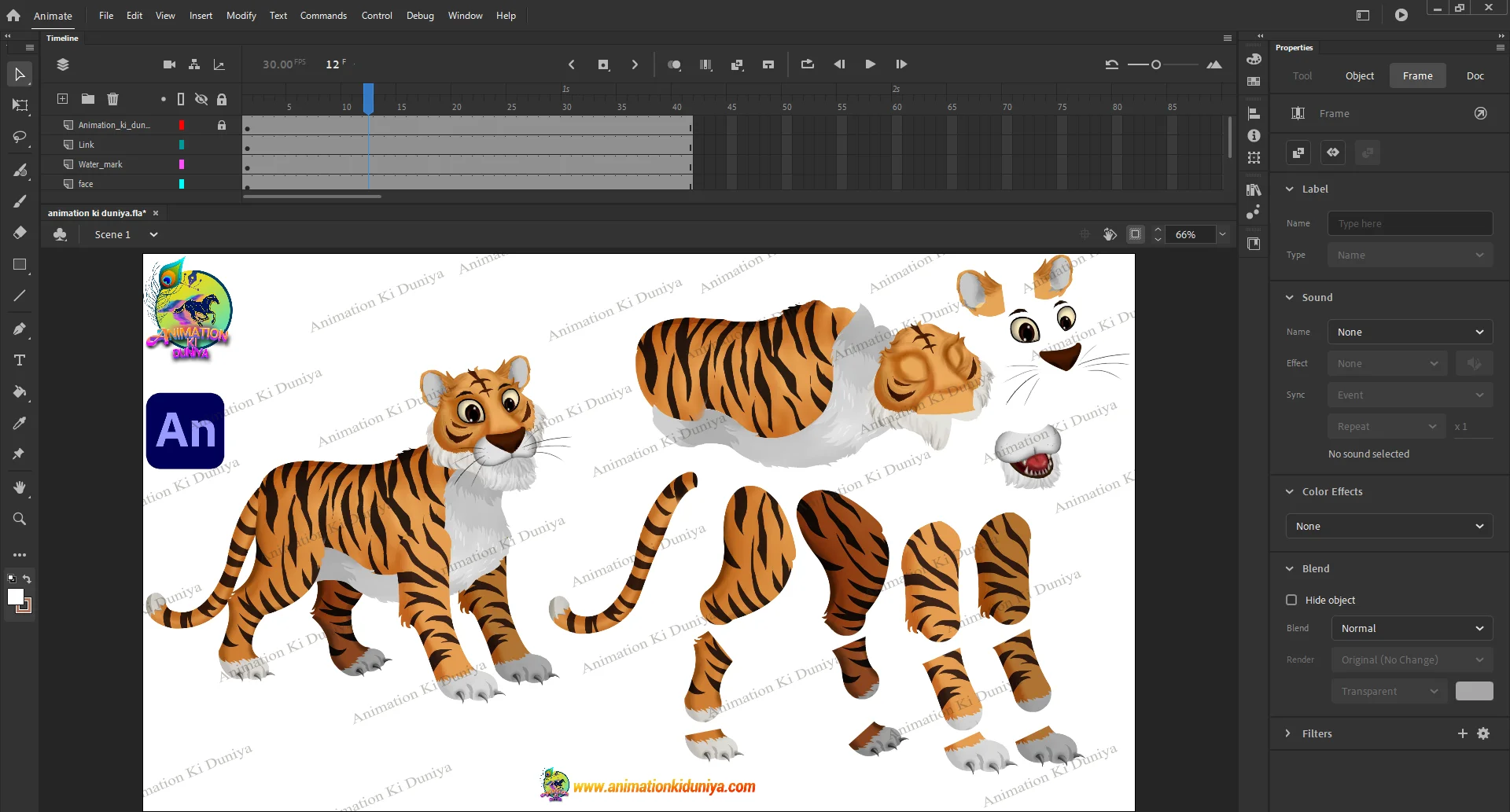 Optimized for 2D: Clean vector lines and bold colors ensure the tiger looks great in any 2D animation software.