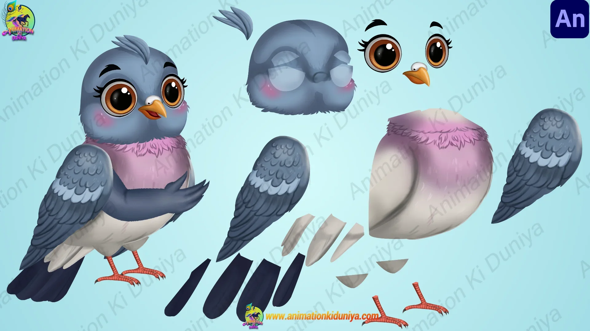 Animation Ki Duniya की ओर से यह एक बहुत ही प्यारा कबूतर (Pigeon) कैरेक्टर पैक है। इसे विशेष रूप से Adobe Animate (Animate CC) के लिए बनाया गया है। इसके सॉफ्ट कलर्स और मासूम लुक इसे बच्चों की कहानियों के लिए सबसे बेहतरीन बनाते हैं।