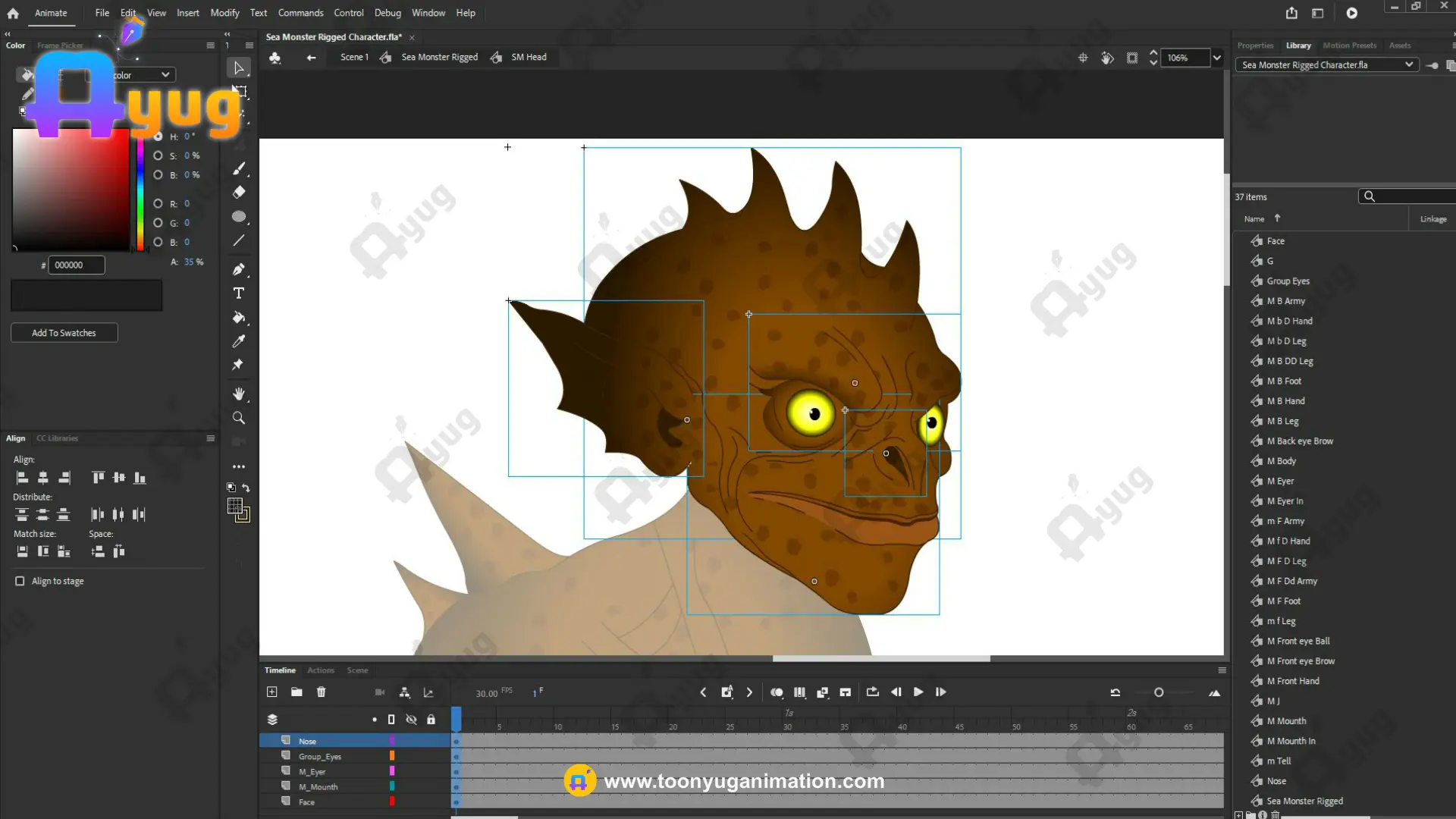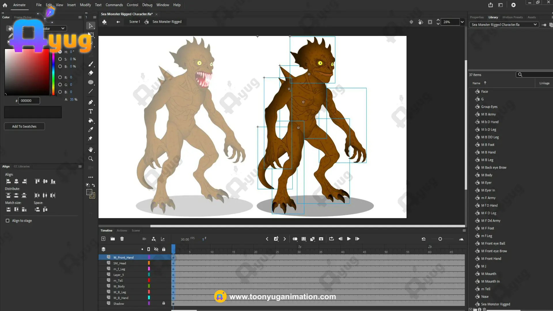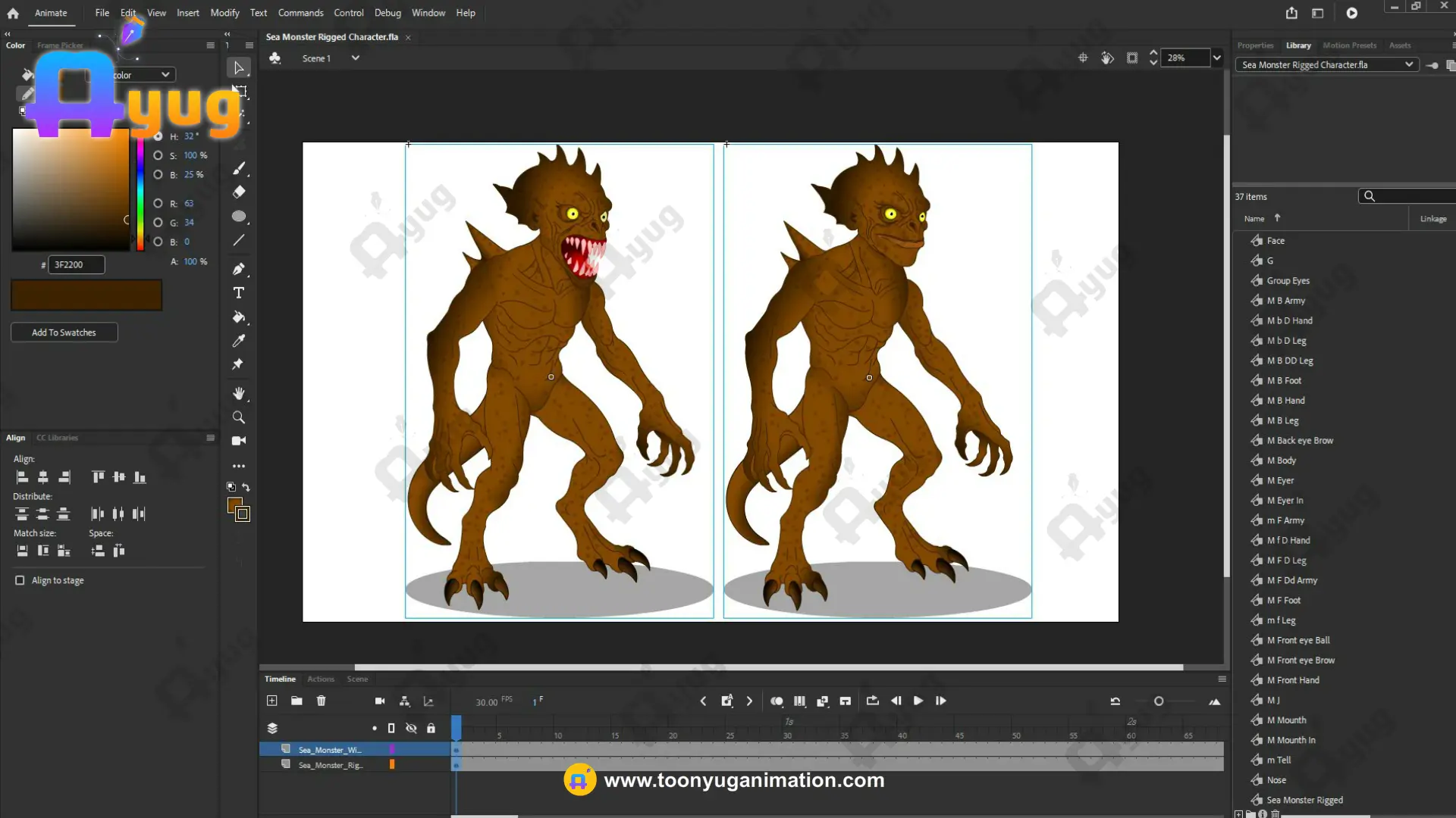 Fully Rigged: Natively built in Adobe Animate CC with a professional symbol hierarchy, allowing for smooth movement of the muscular limbs and aquatic features.