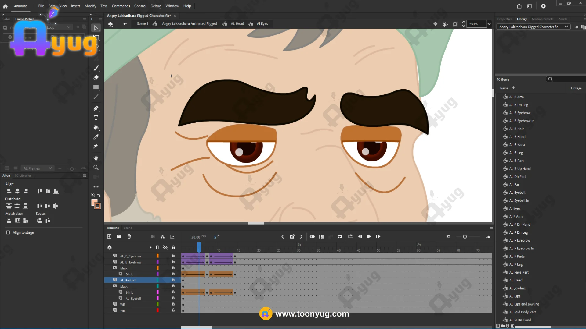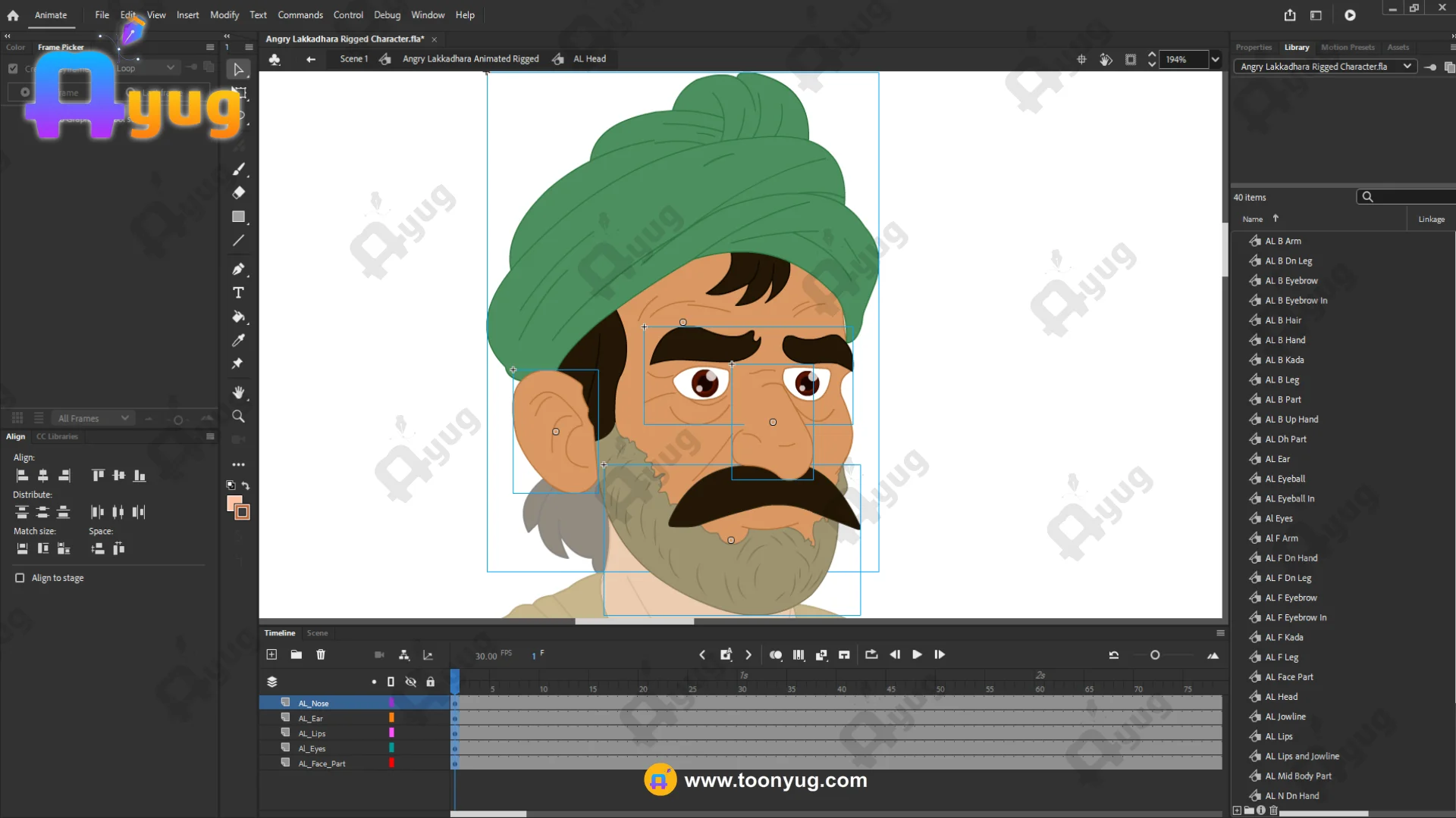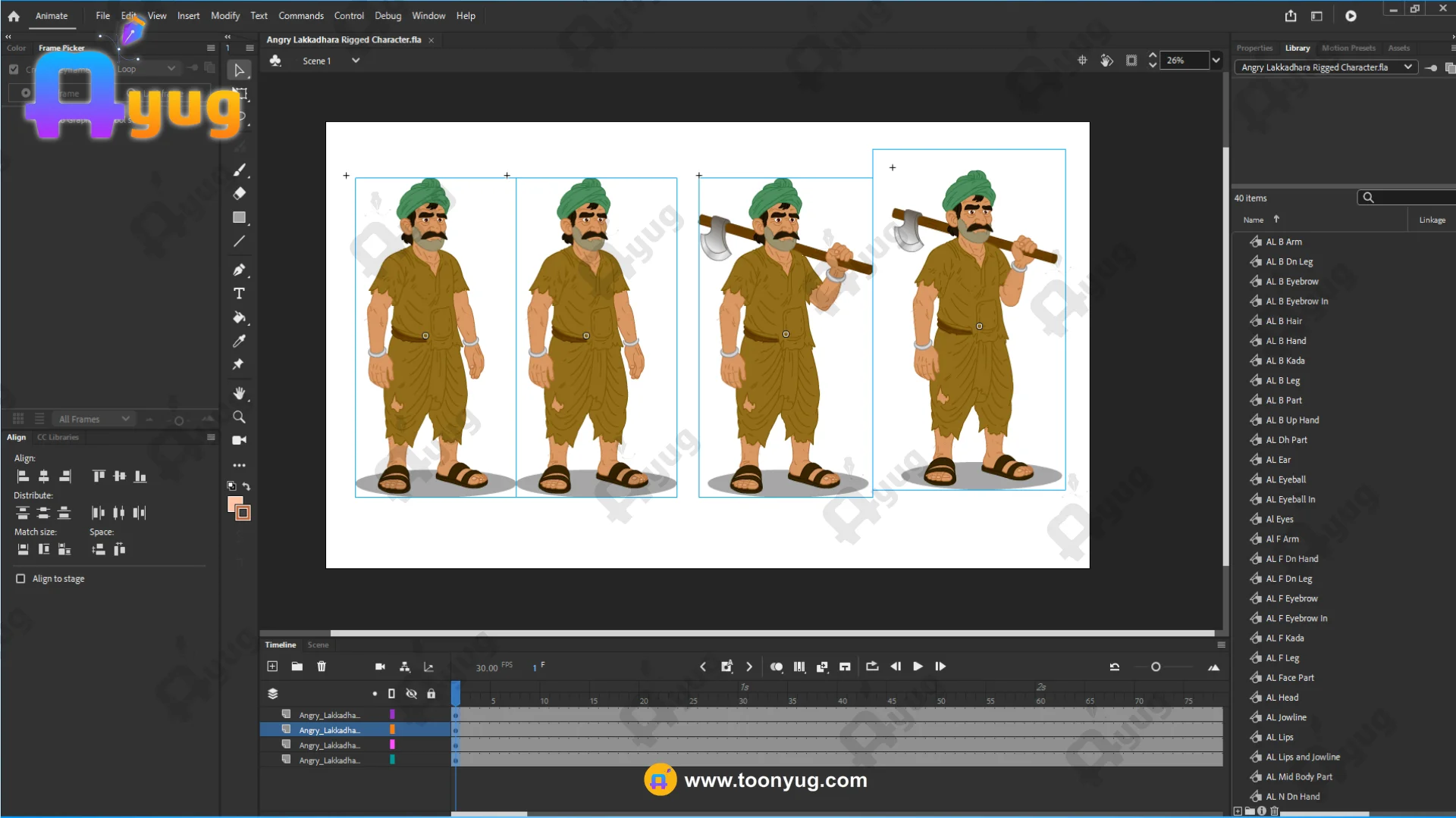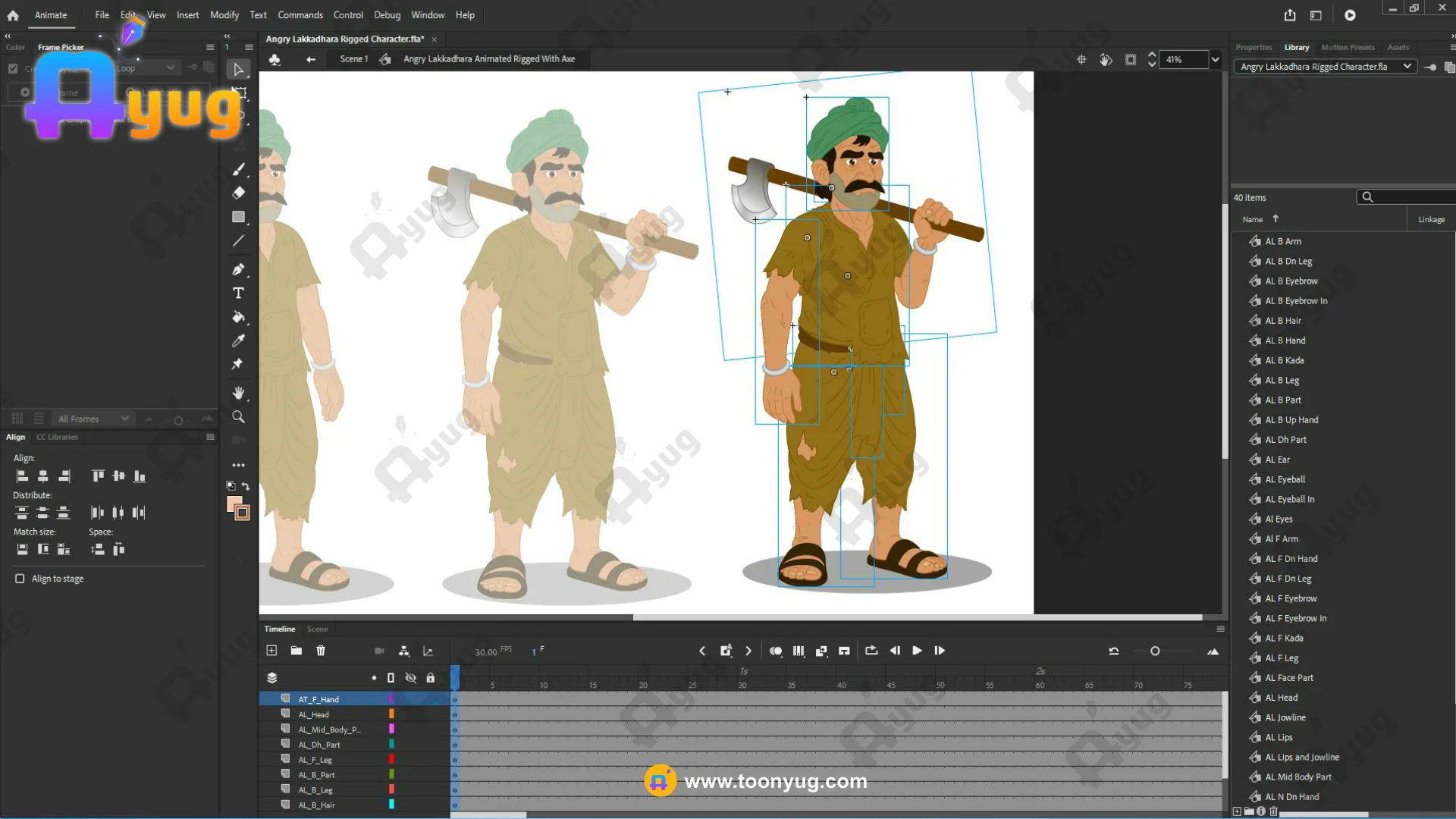 Prop Rig: The Axe is on a separate layer/symbol, allowing you to animate him chopping wood or throwing the axe.