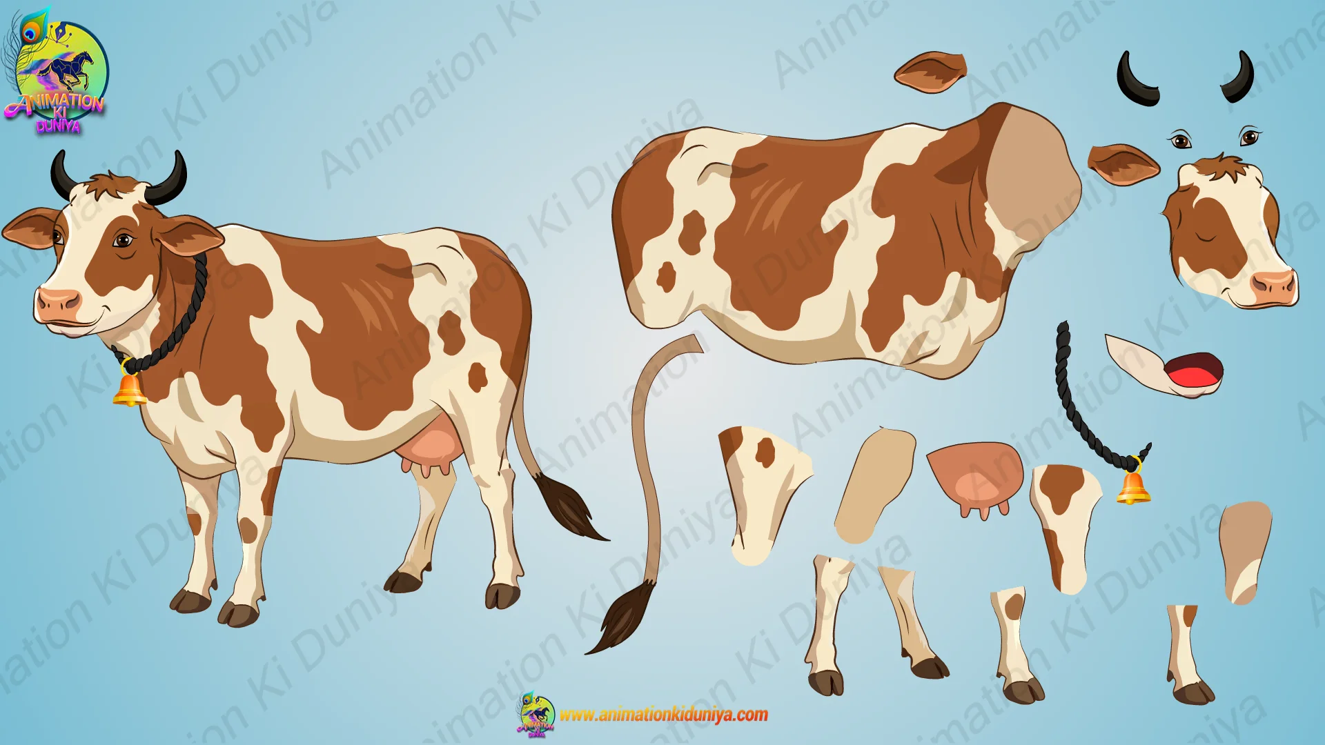 Welcome to Toonyug Animation! In this video, we showcase a beautifully designed brown spotted cow character from “Animation Ki Duniya.” This set includes various poses: standing, walking, and sitting, perfect for 2D animation stories, moral tales, and educational content for kids.
