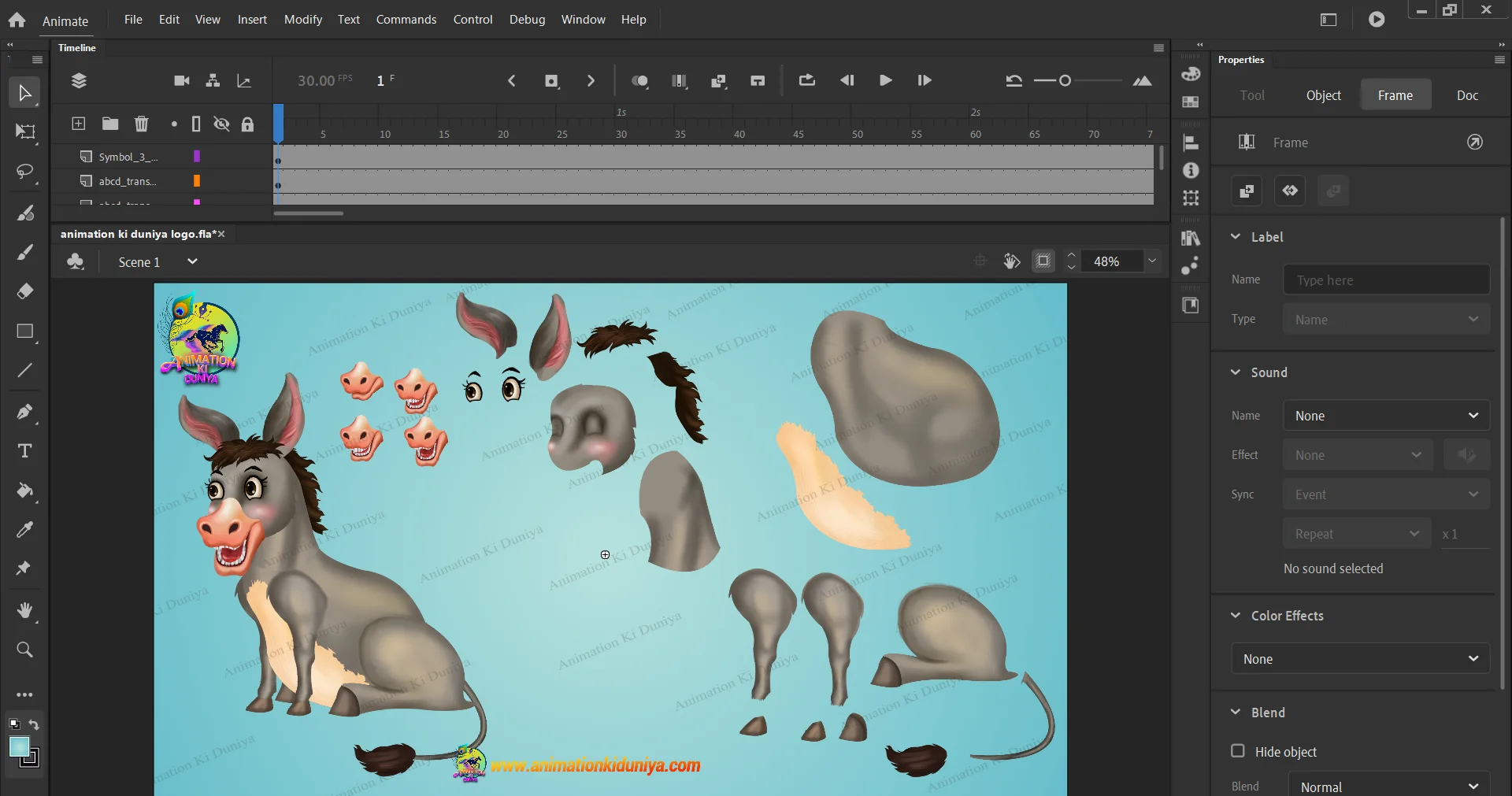 Enhance your 2D animation projects with this expressive Donkey character from “Animation Ki Duniya.” This collection features a variety of essential poses including walking, talking (mouth opening), sitting, and resting. Ideal for creators making moral stories, rhymes, or educational videos for children on Toonyug Animation.