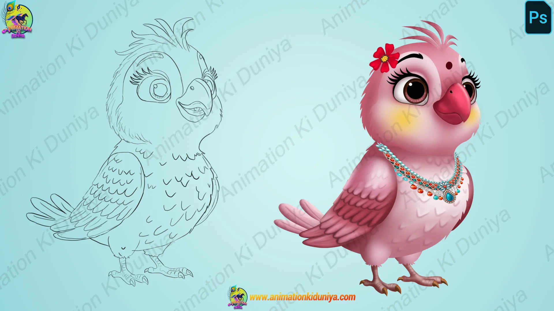 | 1 | Product Type | Animated Pink Bird (Wife) – 2D Photoshop Character |