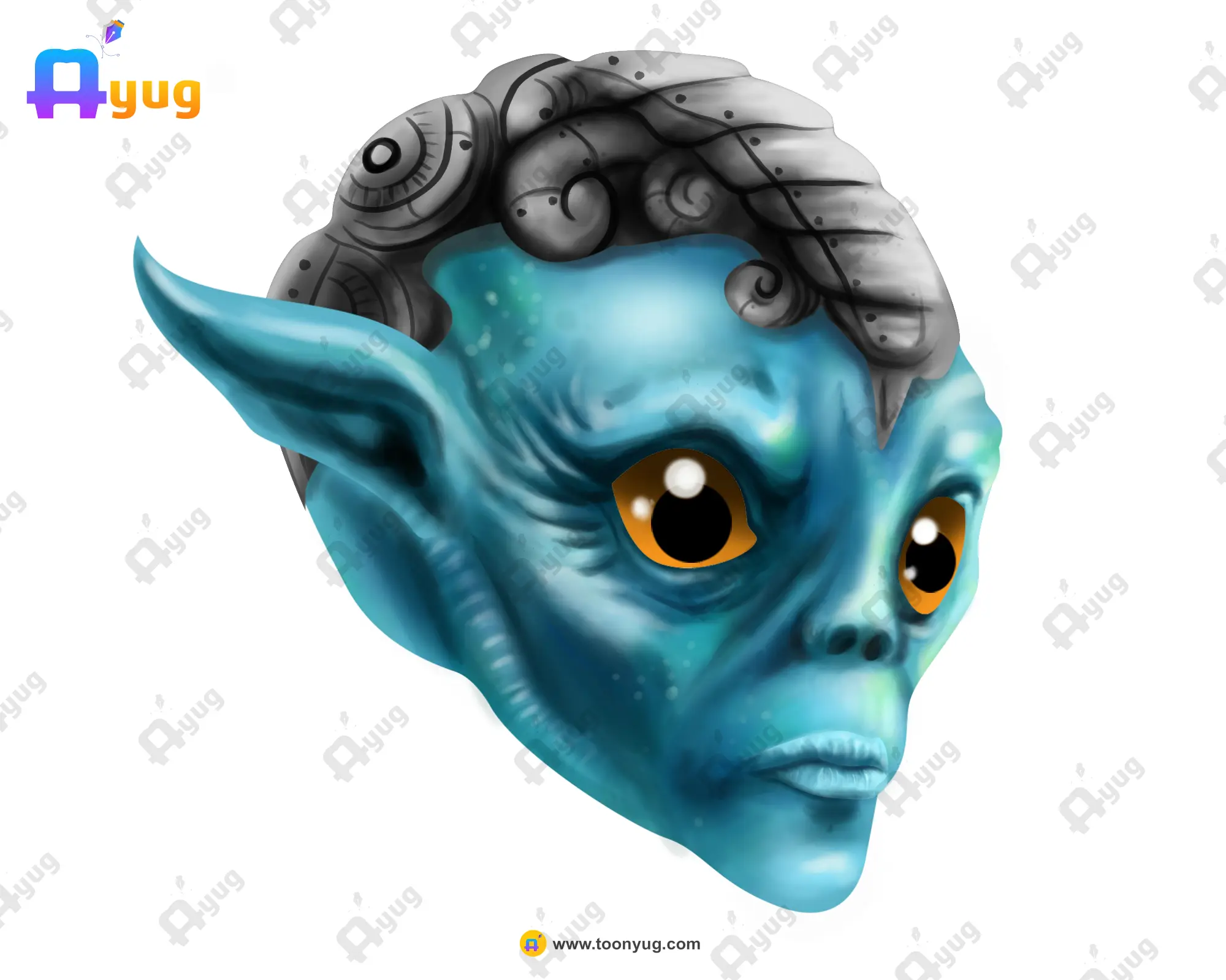 Product Overview: Take your audience to another galaxy with this Blue Alien Head. Unlike typical monsters, this character features a unique blend of organic and mechanical elements, with a distinct grey armored plate on its skull. It is perfect for Sci-Fi animation series, space exploration games, or futuristic YouTube thumbnails.