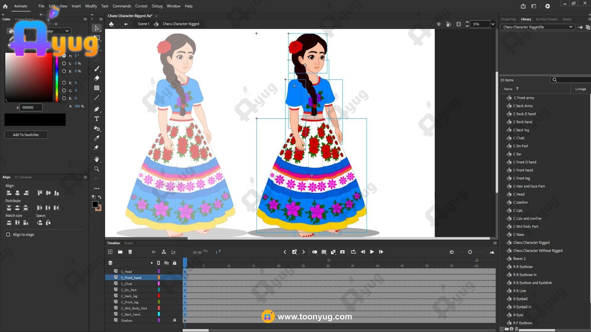 Charu (Floral Gopi) – Fully Rigged Girl with Rose Hairstyle for Adobe Animate