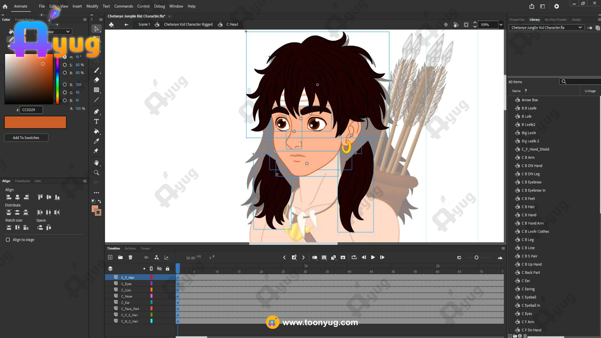 Product Overview: Bring the thrill of the wild to your animation with Chetanye, the fearless jungle kid. Designed for the “Krishna Series” and mythology tales, this character represents a skilled tribal hunter or archer. He comes equipped with a wooden bow and a quiver full of arrows, fully rigged to create dynamic hunting and fighting scenes in Adobe Animate.