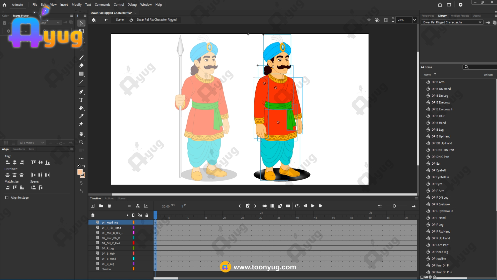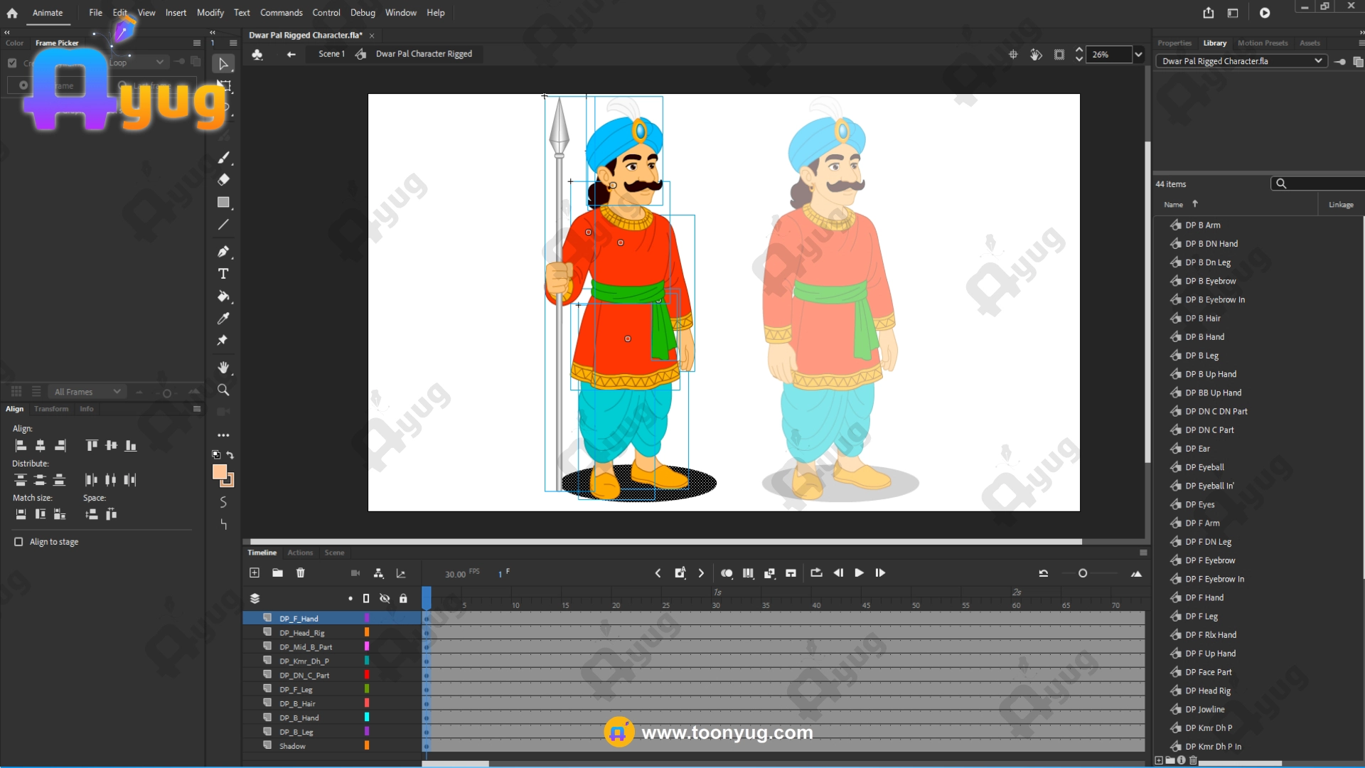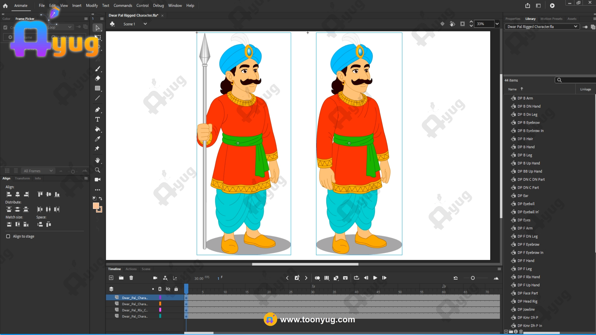 No. Specification Title Detailed Description 1 Product Type Professional 2D Animated Male Character Asset 2 Character Name Dwar Pal (Gatekeeper Character) 3 File Format FLA (Adobe Animate CC Compatible) 4 Software Used Designed & Created in Adobe Animate CC 5 File Type 100% Vector-Based (Fully Scalable) 6 Professional Level Professional / Industry-Standard 7 Character View 3/4th View 8 Character Style Standing Guard Pose 9 Rigging Type Fully Pro-Rigged Body 10 Detailing Level Clean & High-Quality Professional Detailing 11 Frame Rate 30 Frames Per Second (FPS) 12 Leg Poses 2 Leg Poses Included 13 Body Balance Stable & Animation-Ready Structure 14 Editing Flexibility Fully Editable in Animate CC 15 Animation Readiness Production-Ready Character 16 Pose Usage Guard, Standing, Watch Duty Scenes 17 Canvas / Dimensions No Limit (Fully Scalable Canvas) 18 License Commercial License Included 19 Copyright Safety Royalty-Free & Safe for Use 20 File Size Approx. 1 MB (Lightweight & Optimized)