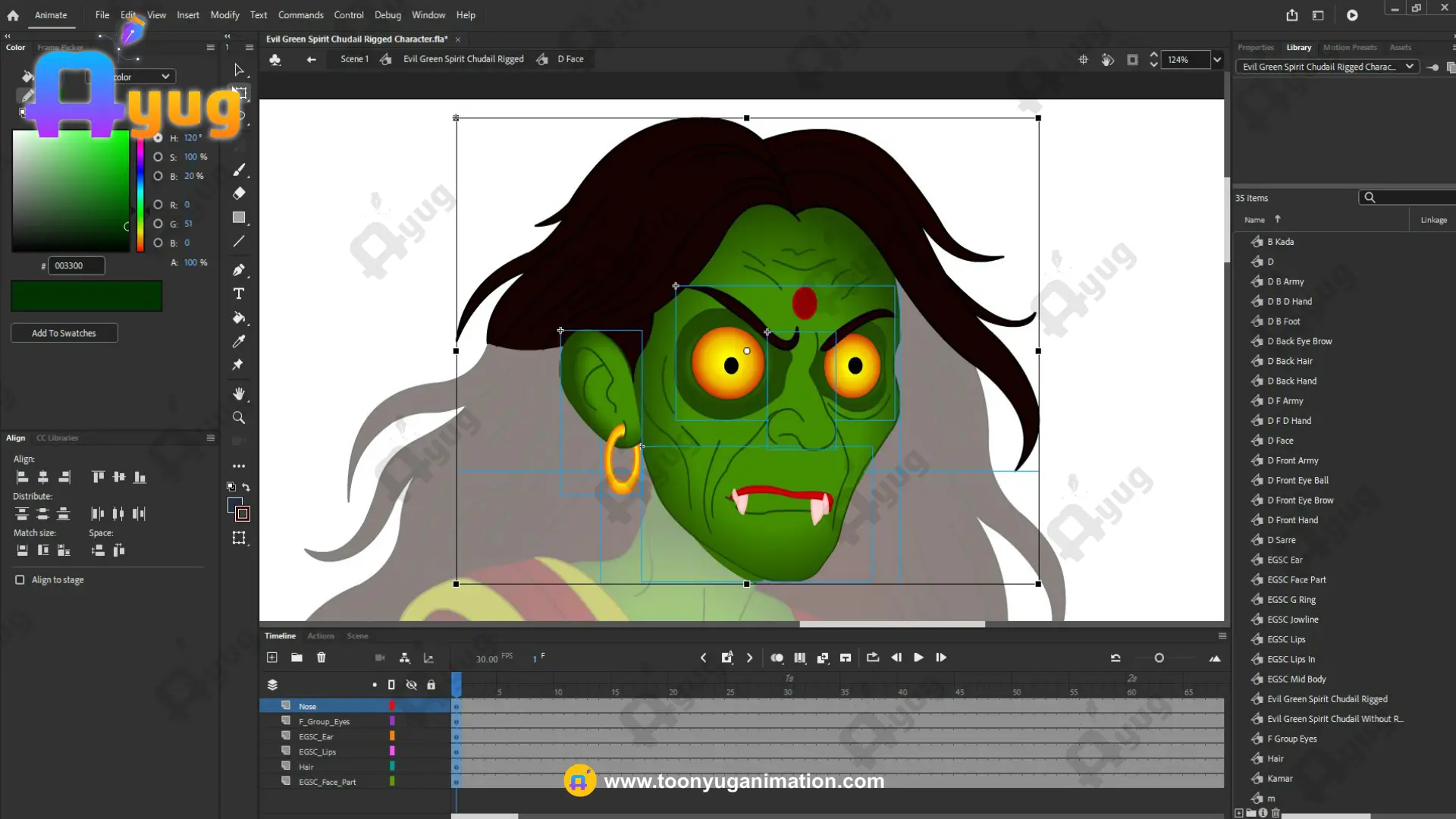 Evil Green Spirit / Chudail Character – Fully Rigged for Adobe Animate CC