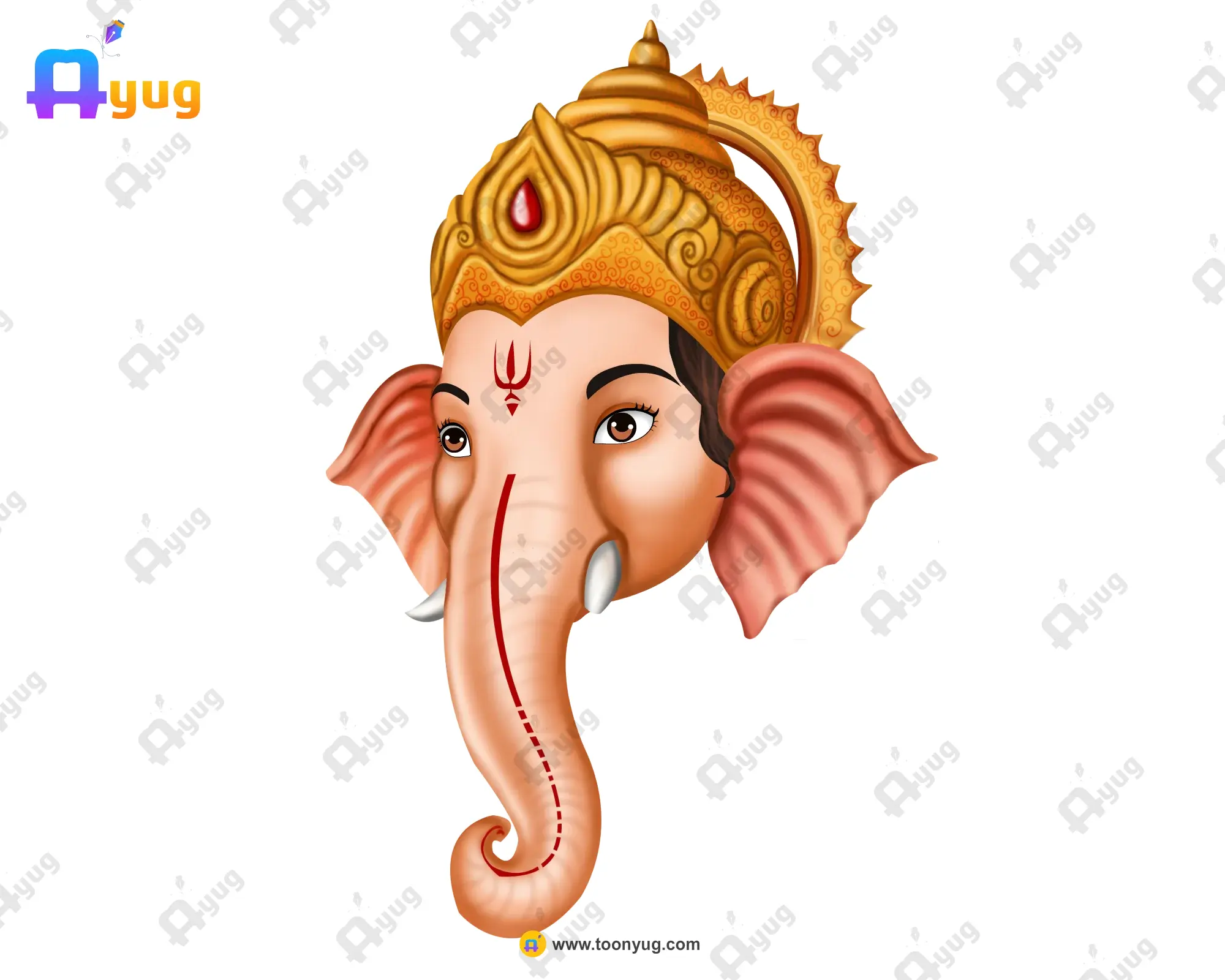 Elephant Head: Features a divine elephant face with a peach/human-like skin tone, representing intelligence and wisdom.