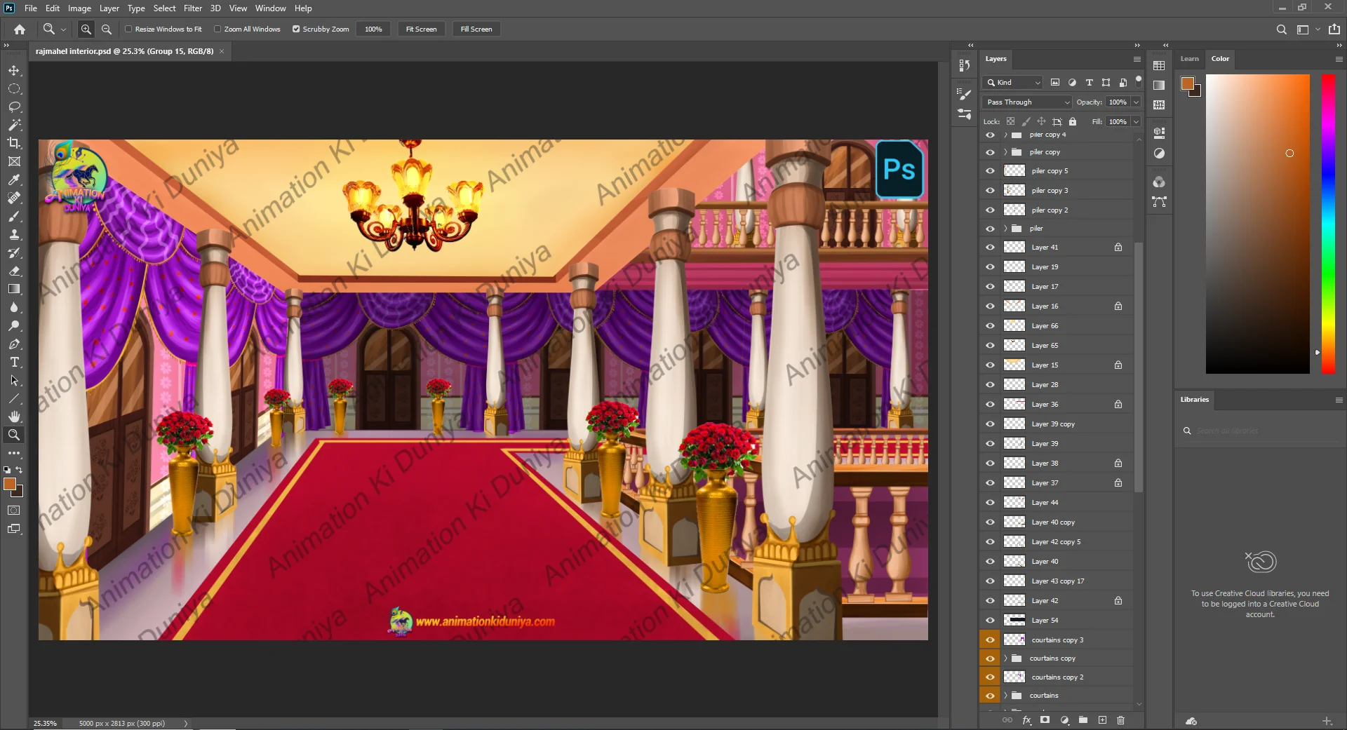 Grand Royal Palace Interior Hall – 2D Animation Lobby Background (PSD & PNG)