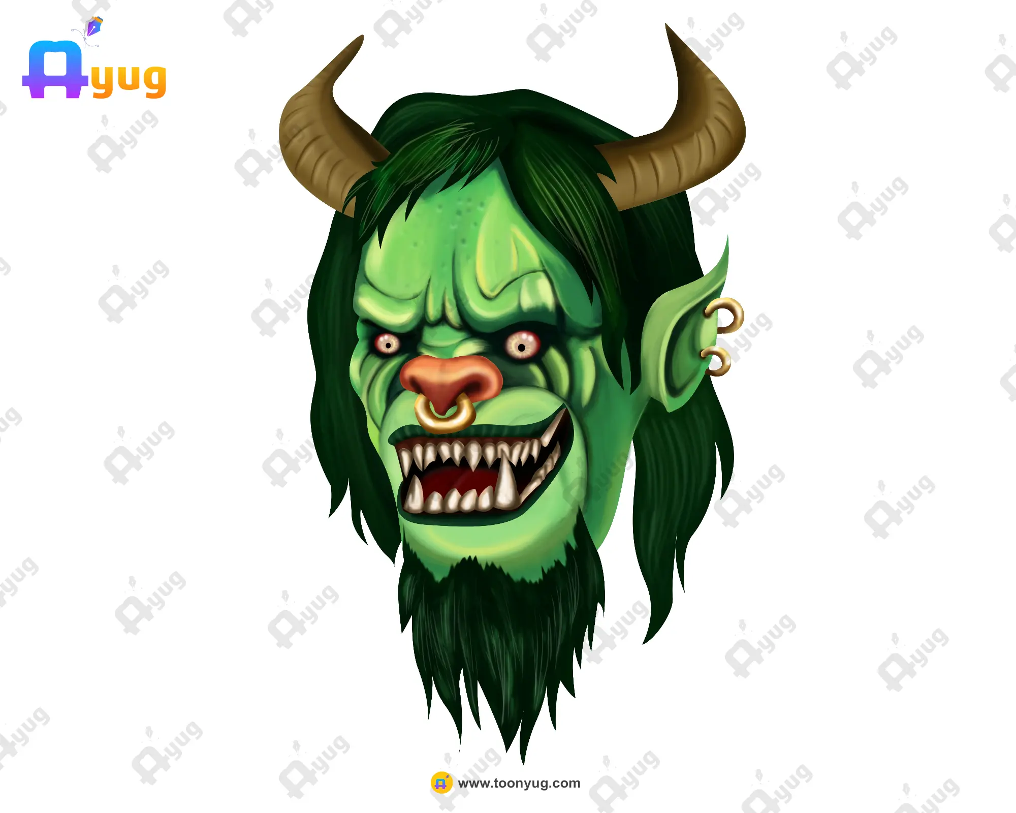 Green Horned Demon (Rakshas) – Pierced Monster Head (Available in Animated .FLA & Static .PSD)
