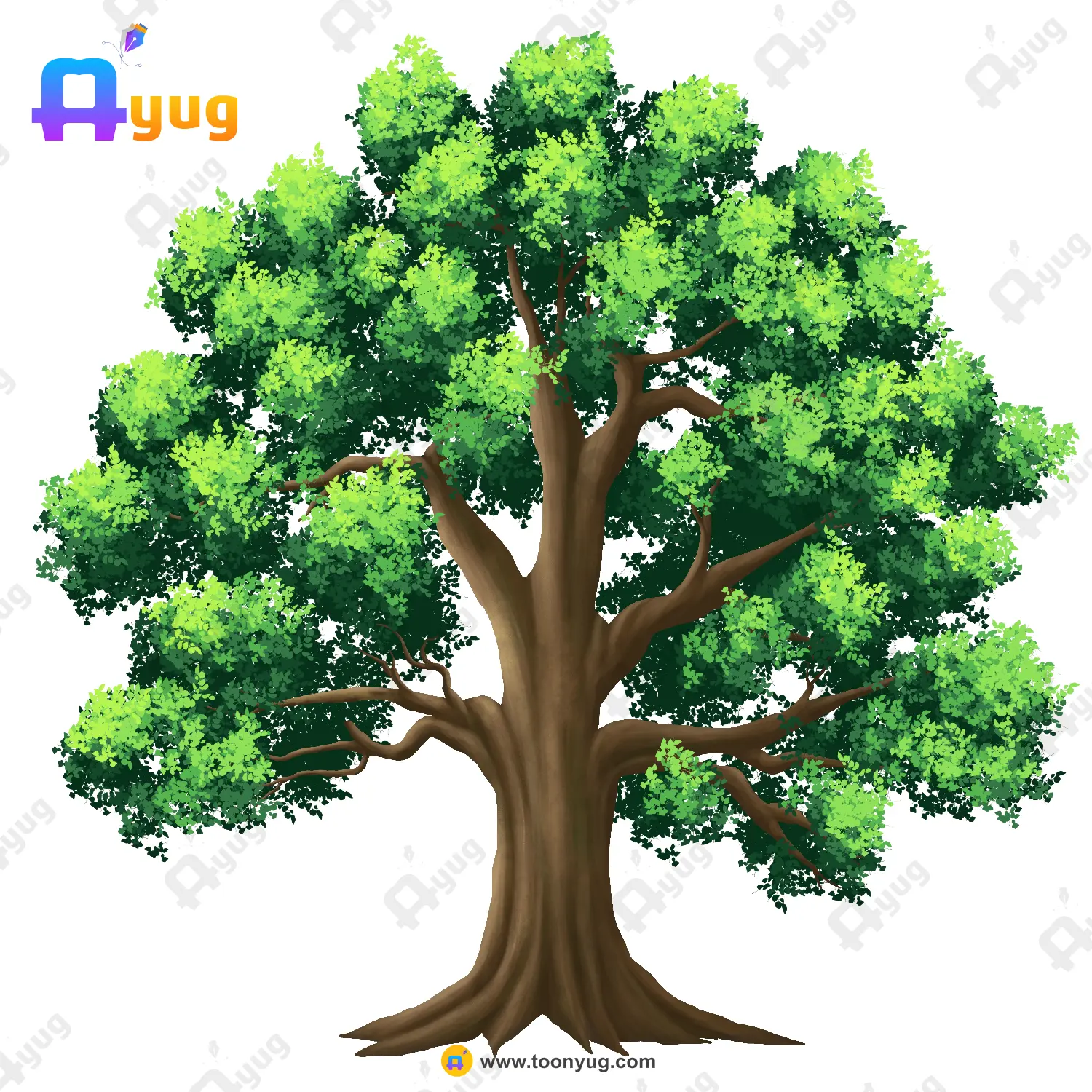 Indian Big Green Tree Vector – Classic Village Shade Tree with Visible Branches (Available in Animated .FLA & Static .PSD)