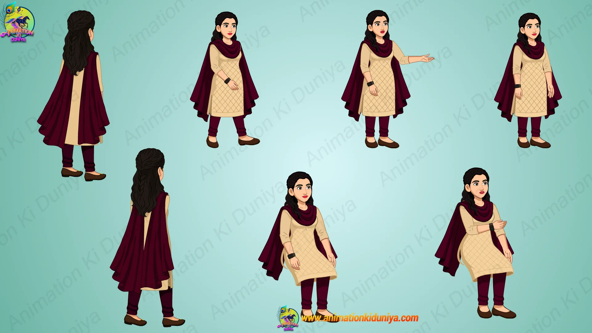 Cultural Authenticity: Designed with traditional attire (Salwar Suit) and a realistic hairstyle, perfect for Indian-themed animations.