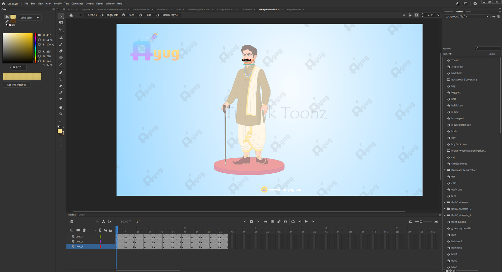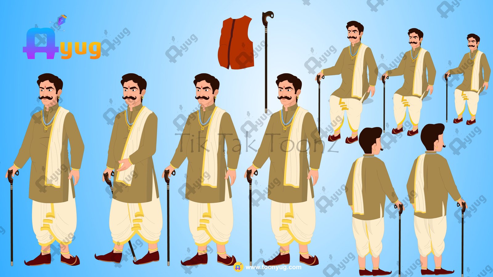 Body Text: Save hours of drawing and rigging time with this professionally designed Indian Village Angry Seth(Jamindar) Animated Human Character. Created specifically for 2D animators and storytellers, this character comes fully rigged and ready to animate in Adobe Animate.