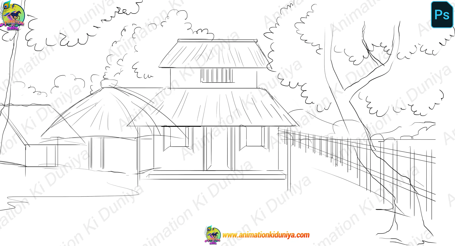 Indian Village House Exterior Background – 2D Animation (PNG & PSD)