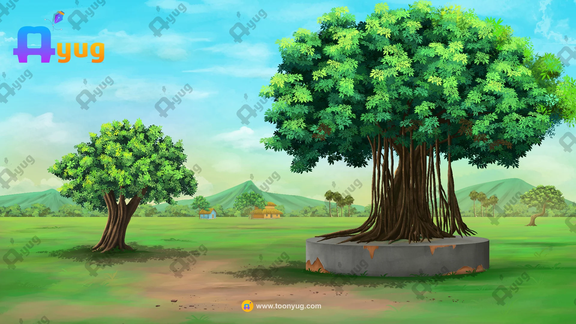 Indian Village Chaupal Background – Banyan Tree & Panchayat Scene (Available in Animated .FLA & Static .PSD)