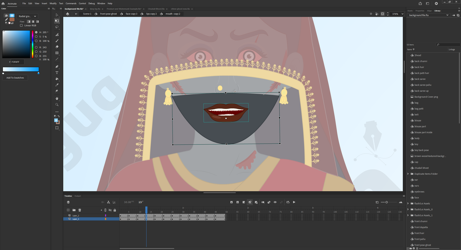 Body Text: Save hours of drawing and rigging time with this professionally designed Indian Village Stree Woman Ghost. Created specifically for 2D animators and storytellers, this character comes fully rigged and ready to animate in Adobe Animate.