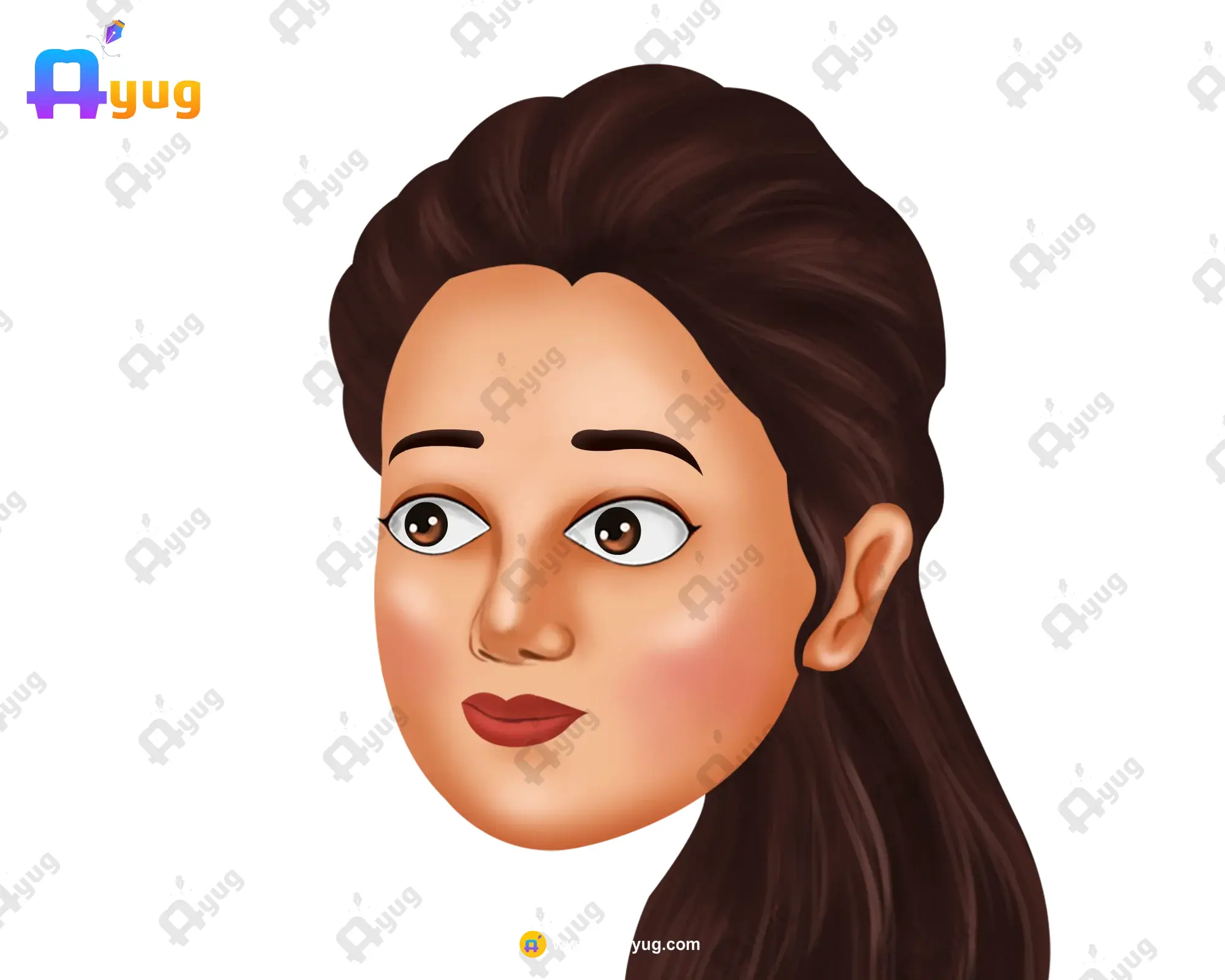 • Long Flowing Hair: Features thick, dark brown long hair styled simply, giving her a versatile and pretty look.