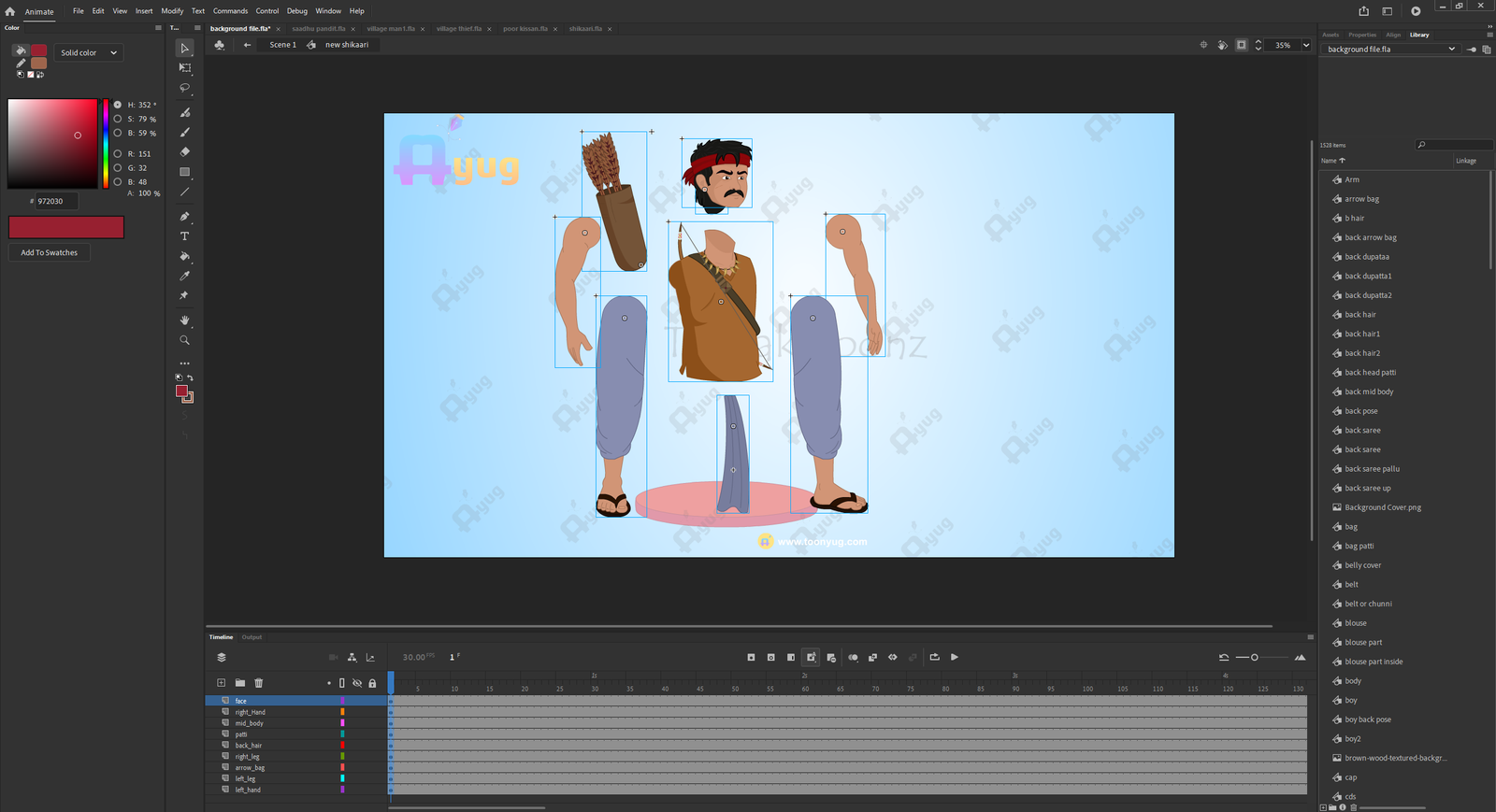 Body Text: Save hours of drawing and rigging time with this professionally designed Indian Village Bird Shikari (Hunter). Created specifically for 2D animators and storytellers, this character comes fully rigged and ready to animate in Adobe Animate.