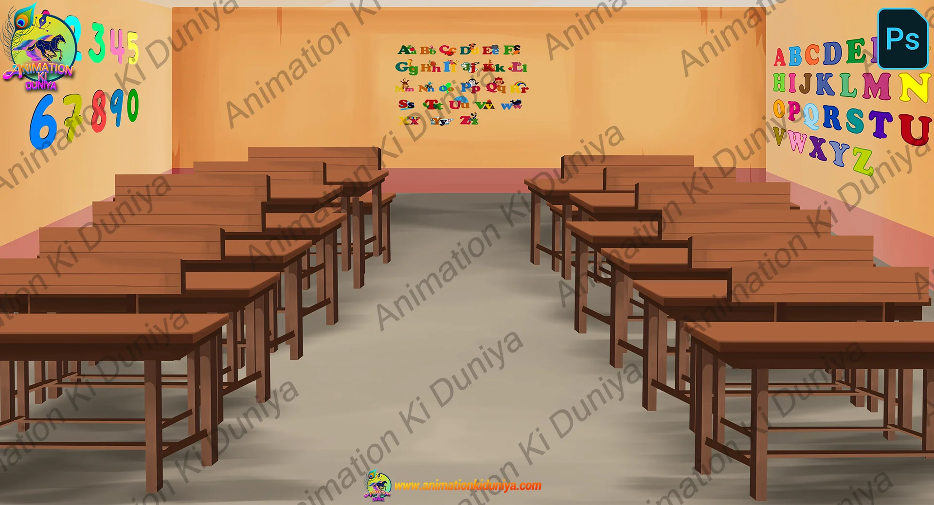 Kids Classroom Interior – 2D Animation Background (PSD & PNG)