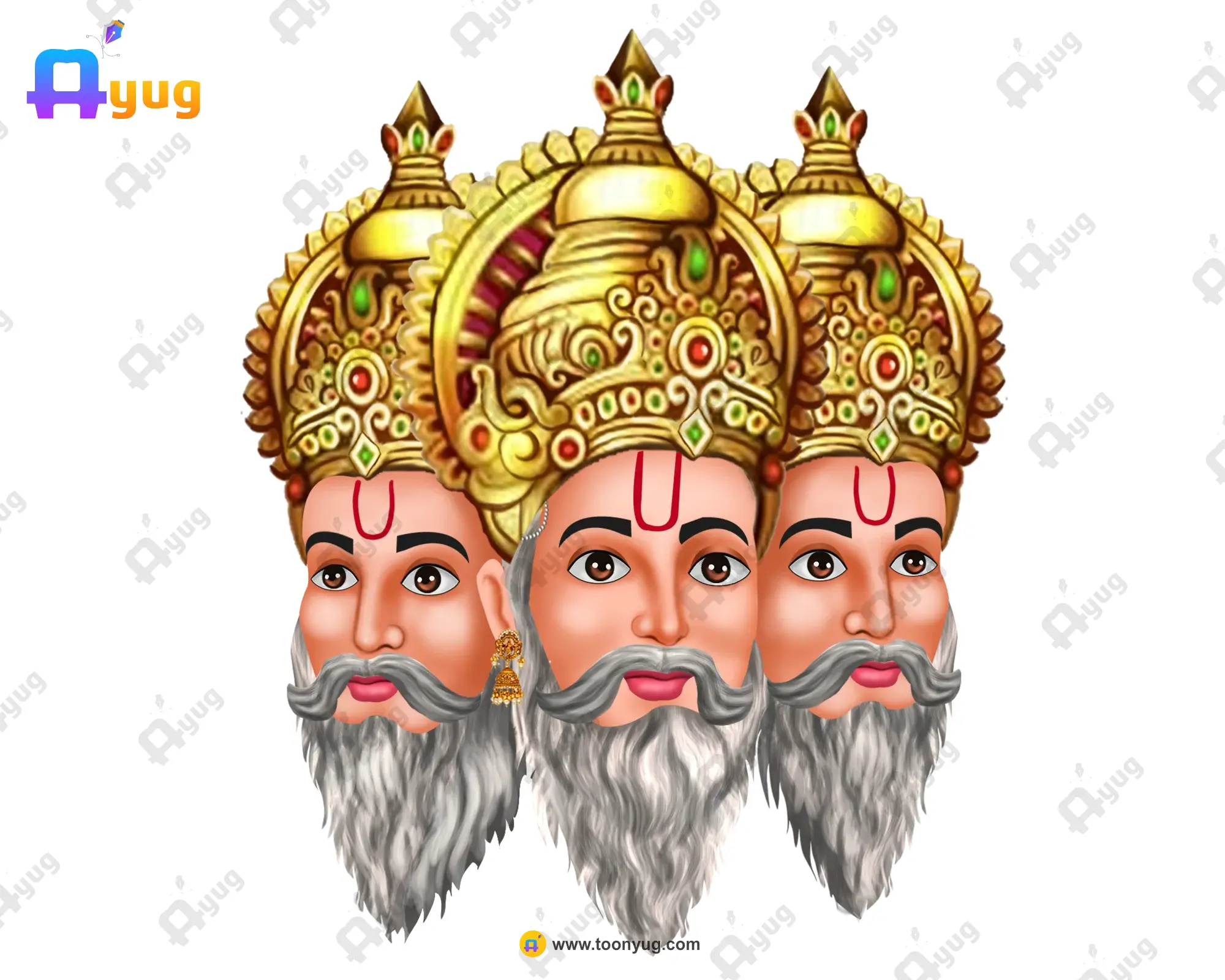 Product Overview: Bring the creator of the universe to your stories with this Lord Brahma Head. Representing supreme wisdom, this character features the iconic three visible heads, majestic golden crowns, and a sage-like white beard. It is an essential asset for any animation project covering the creation of the world, the Tridev, or ancient Hindu scriptures.