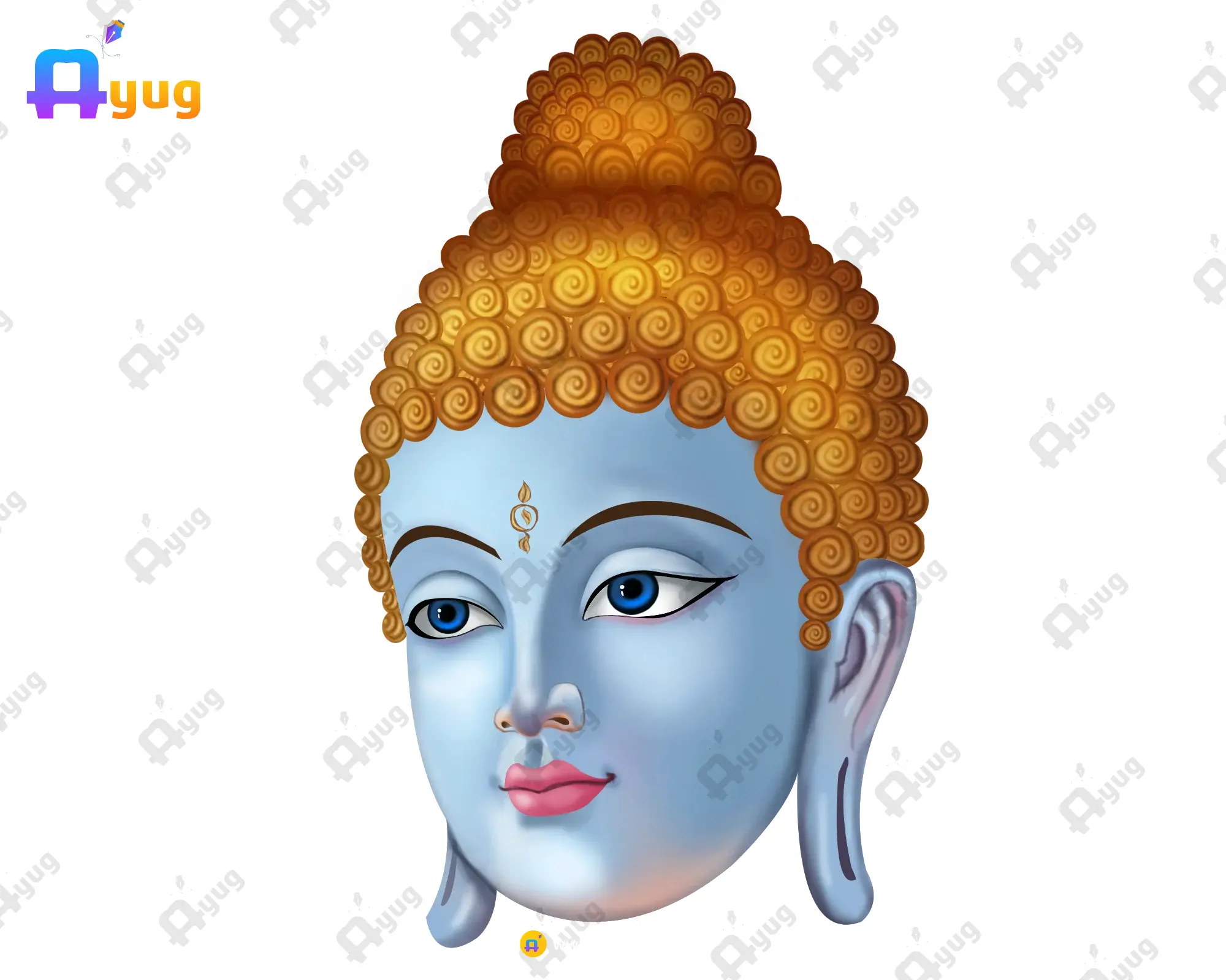 Lord Buddha Head (Black Hair) – Traditional Gautam Budh Character (Available in Animated .FLA & Static .PSD)