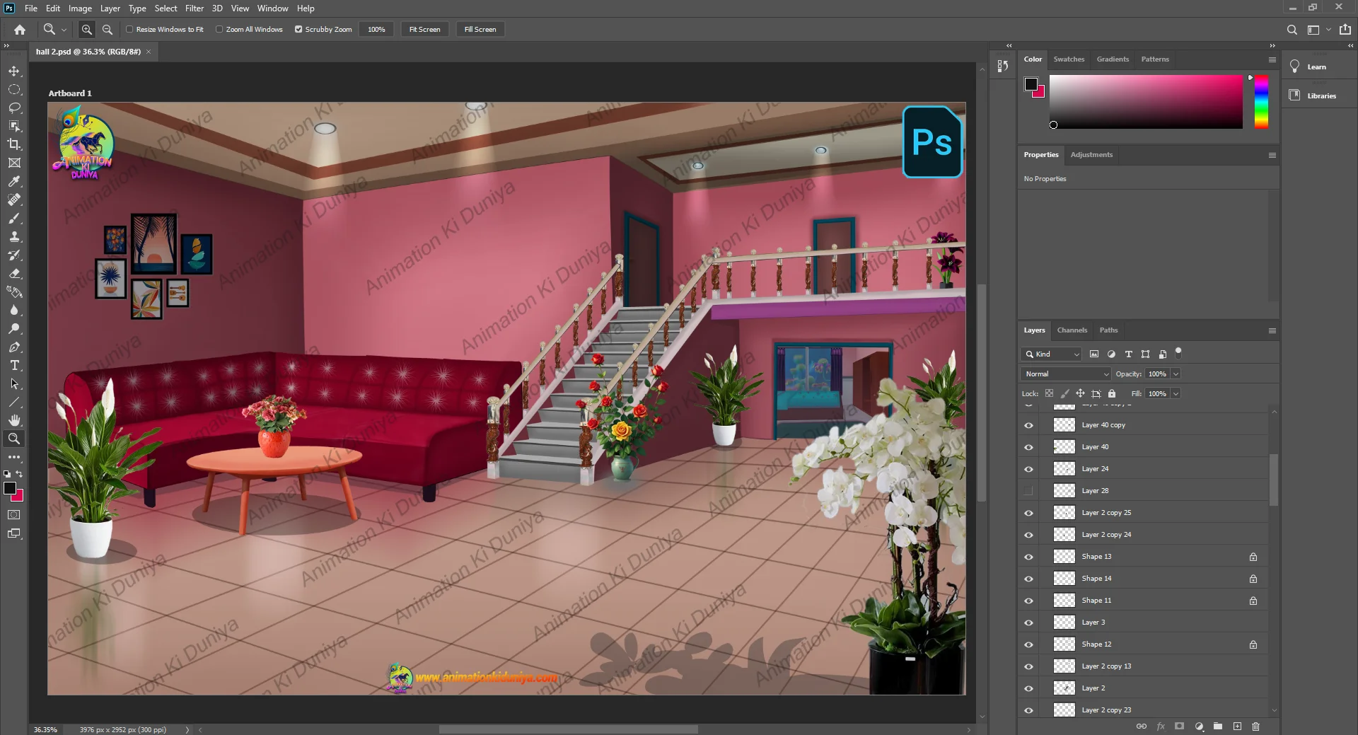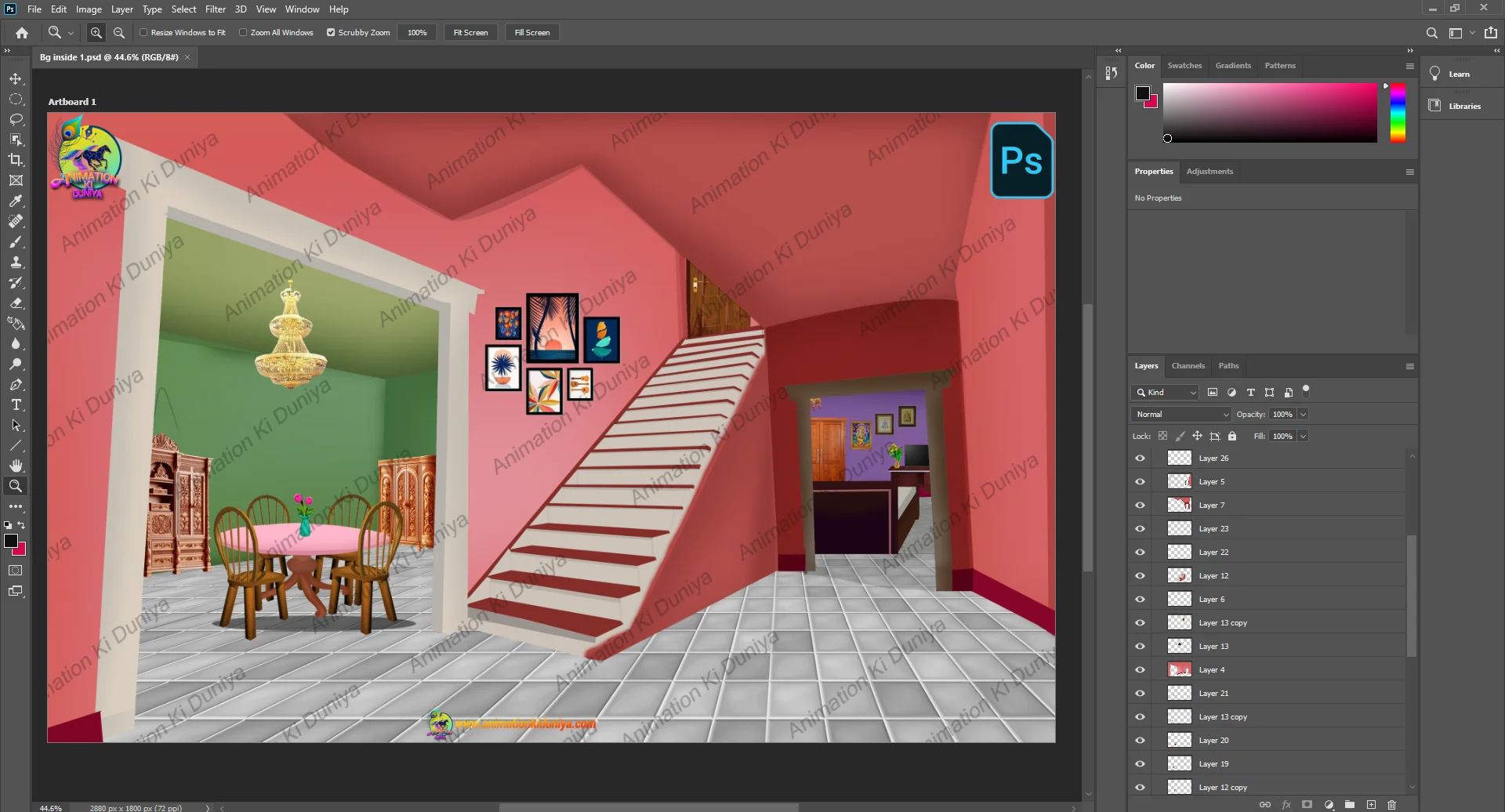 Professional 2D Interior Backgrounds for Cartoon Videos (9 Fully Layered PSD)