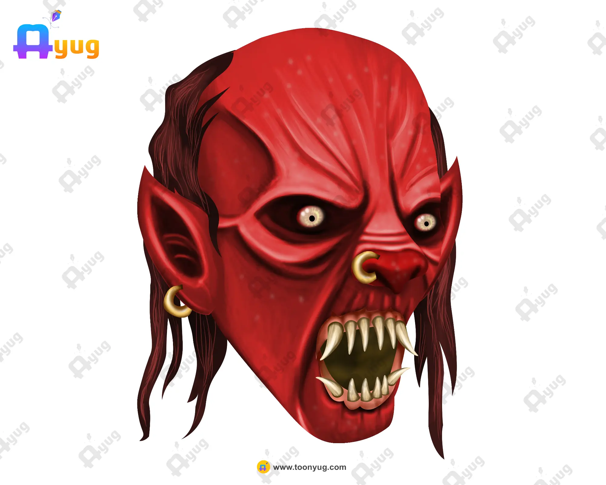 Product Overview: Create an army of darkness with this Red Bald Demon Head. Unlike the demon kings, this character represents the foot soldiers of hell—a Bald Red Goblin with piercing eyes and gold jewelry. He is perfect for playing the role of a minion, a mischievous imp, or a tribal forest demon in your animation projects.