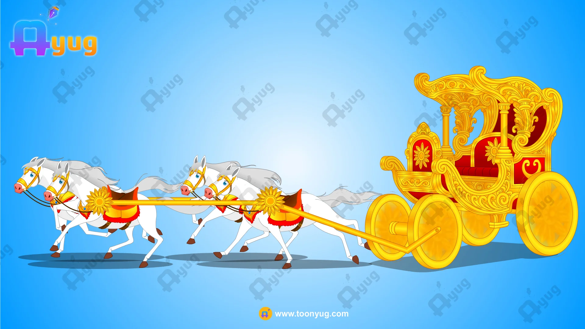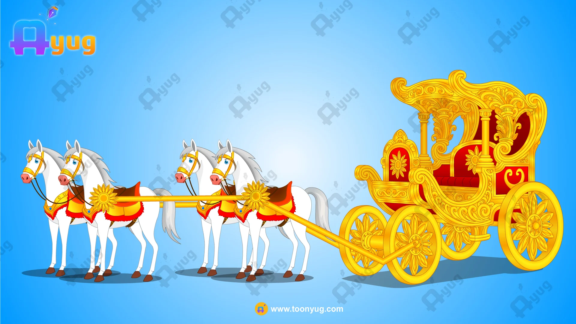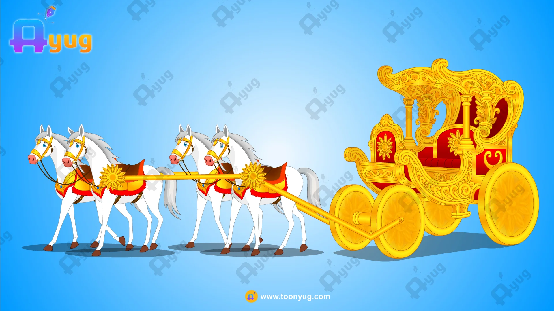 Royal Golden Chariot (Rath) & 2 Horses Pack – Fully Rigged Animation Set