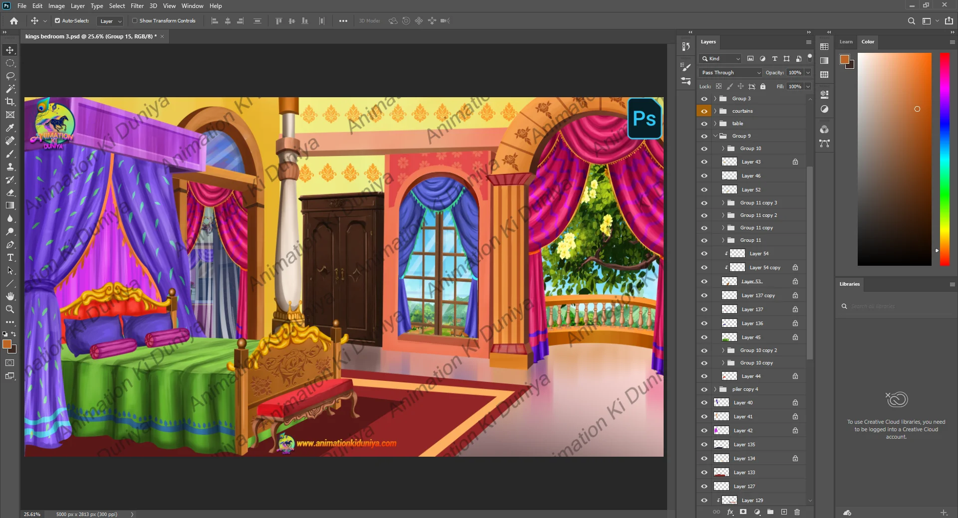 Format 1 (PSD): High-end layered file. Every royal element is separate—including the grand curtains, the golden bed, pillars, wardrobe, and the balcony view.