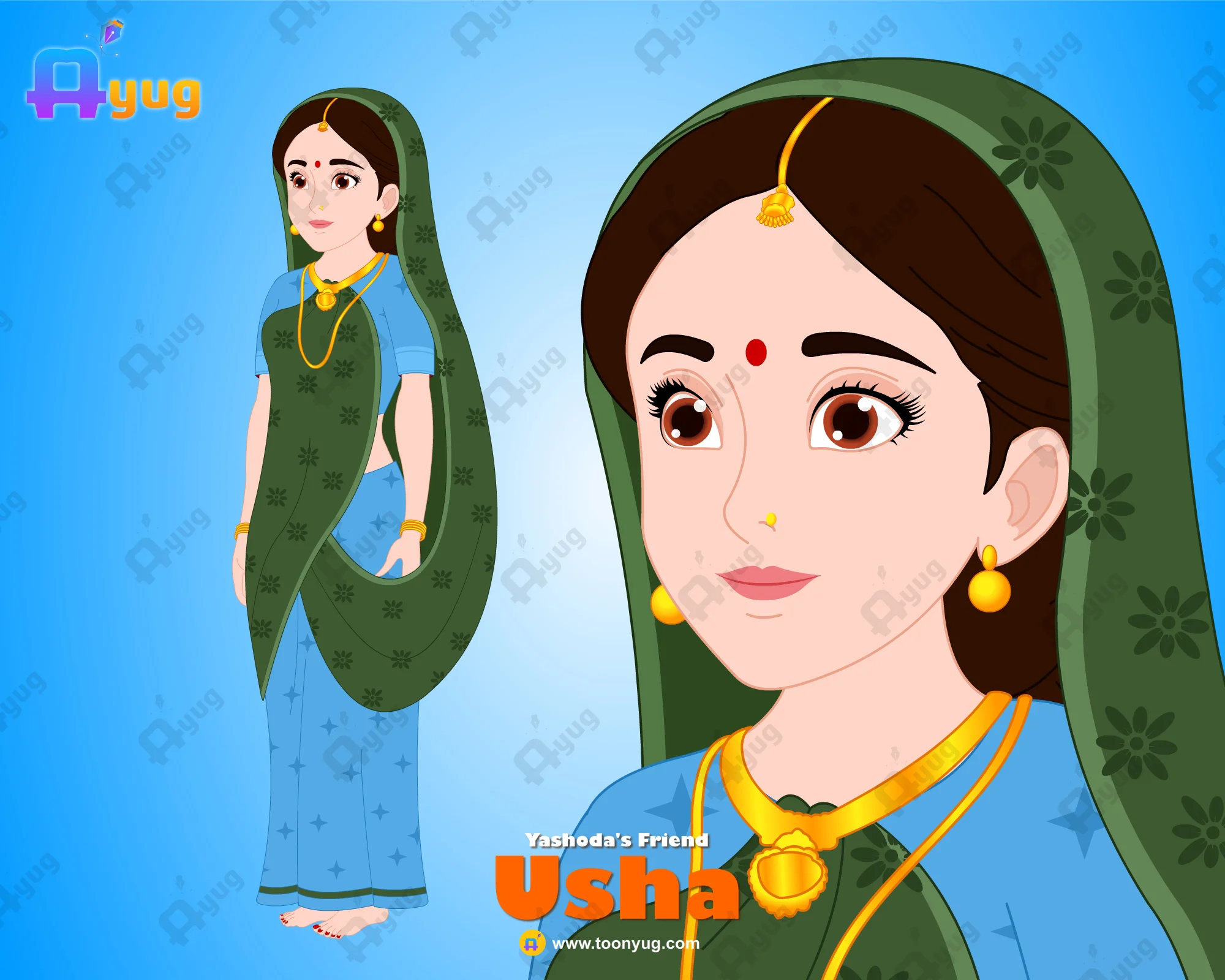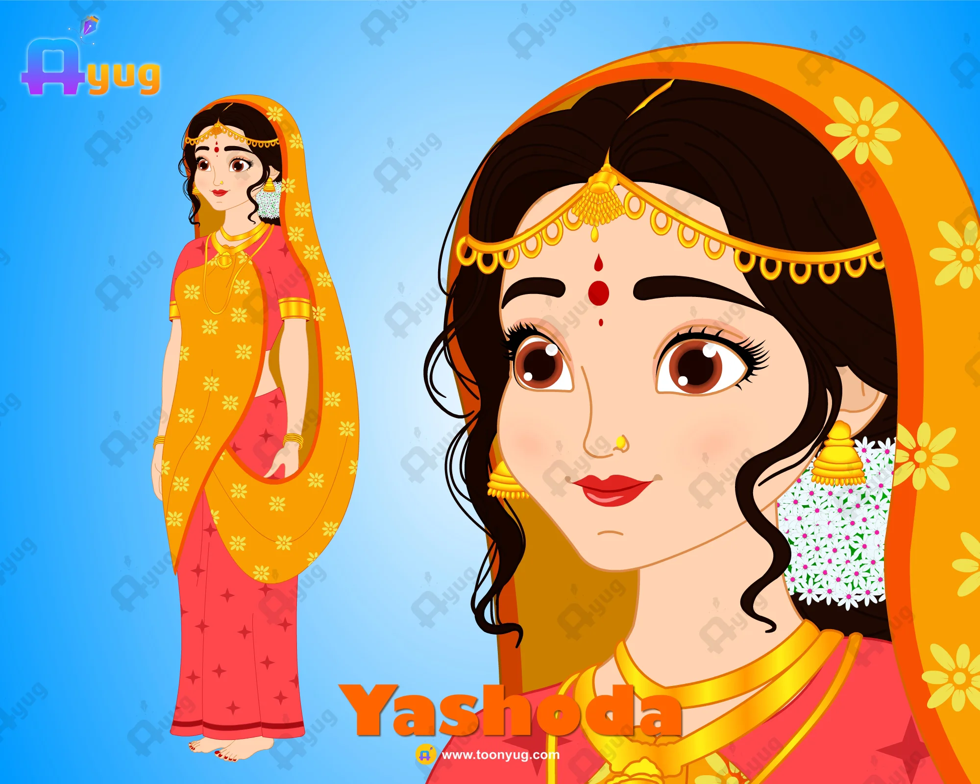 • Yashoda Maiya: Traditional mother in yellow/red saree.